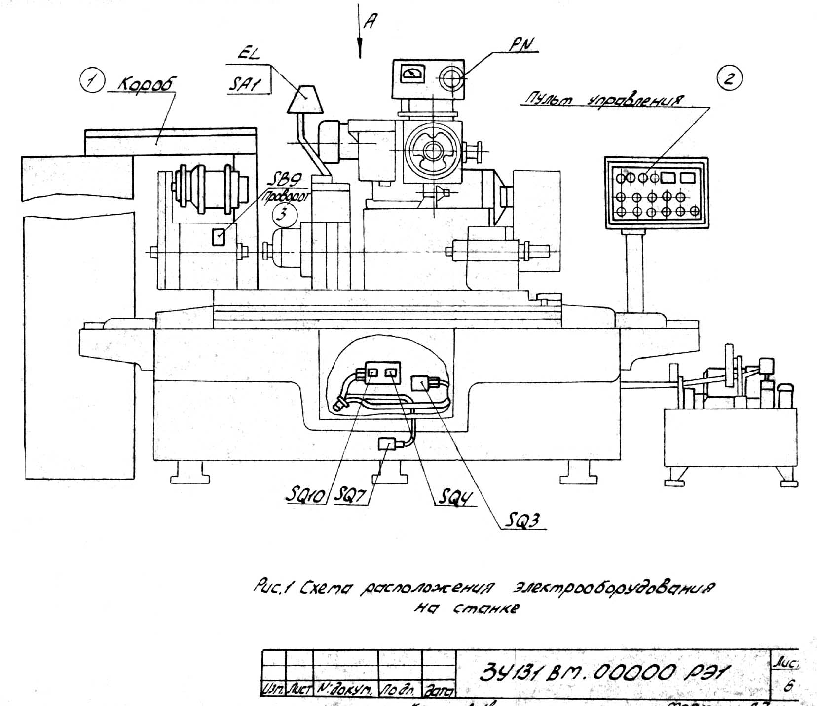 Розташування електроустаткування на круглошлифовальном станке 3У131