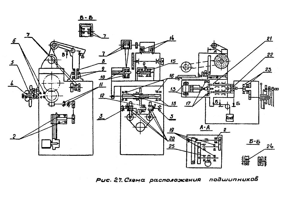 Схема розположення підшибників круглошлифовального верстата 3В10. Дивитись у збільшеному масштабі