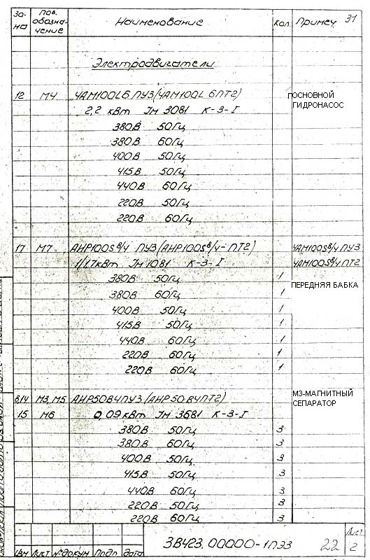 Привід механізмов осуществляется семью трехфазными асинхронными електродвигунами М1..М7.