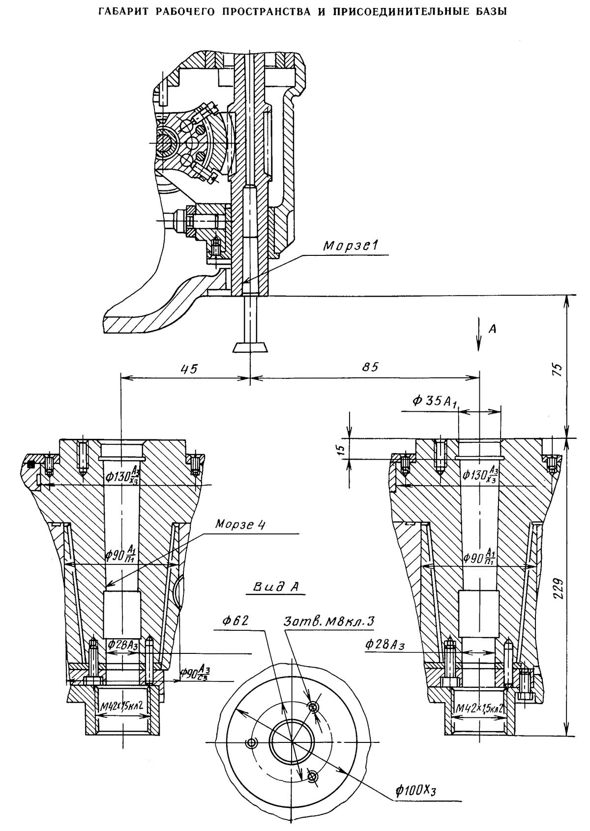 Габаритные розміри робочого простору зубодолбежного напівавтомату 5111. Дивитись у збільшеному масштабі