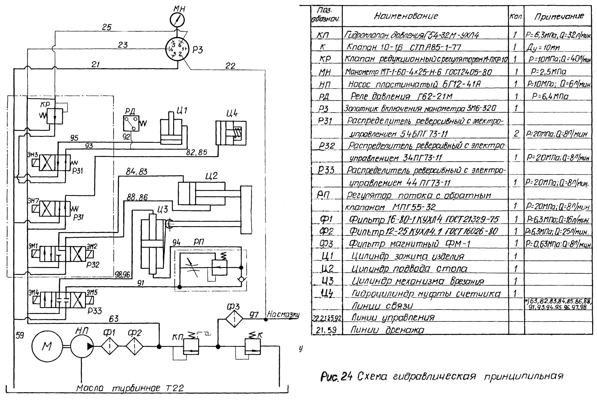 Схема гідравлічна зубодолбежного верстата 5111. Дивитись у збільшеному масштабі