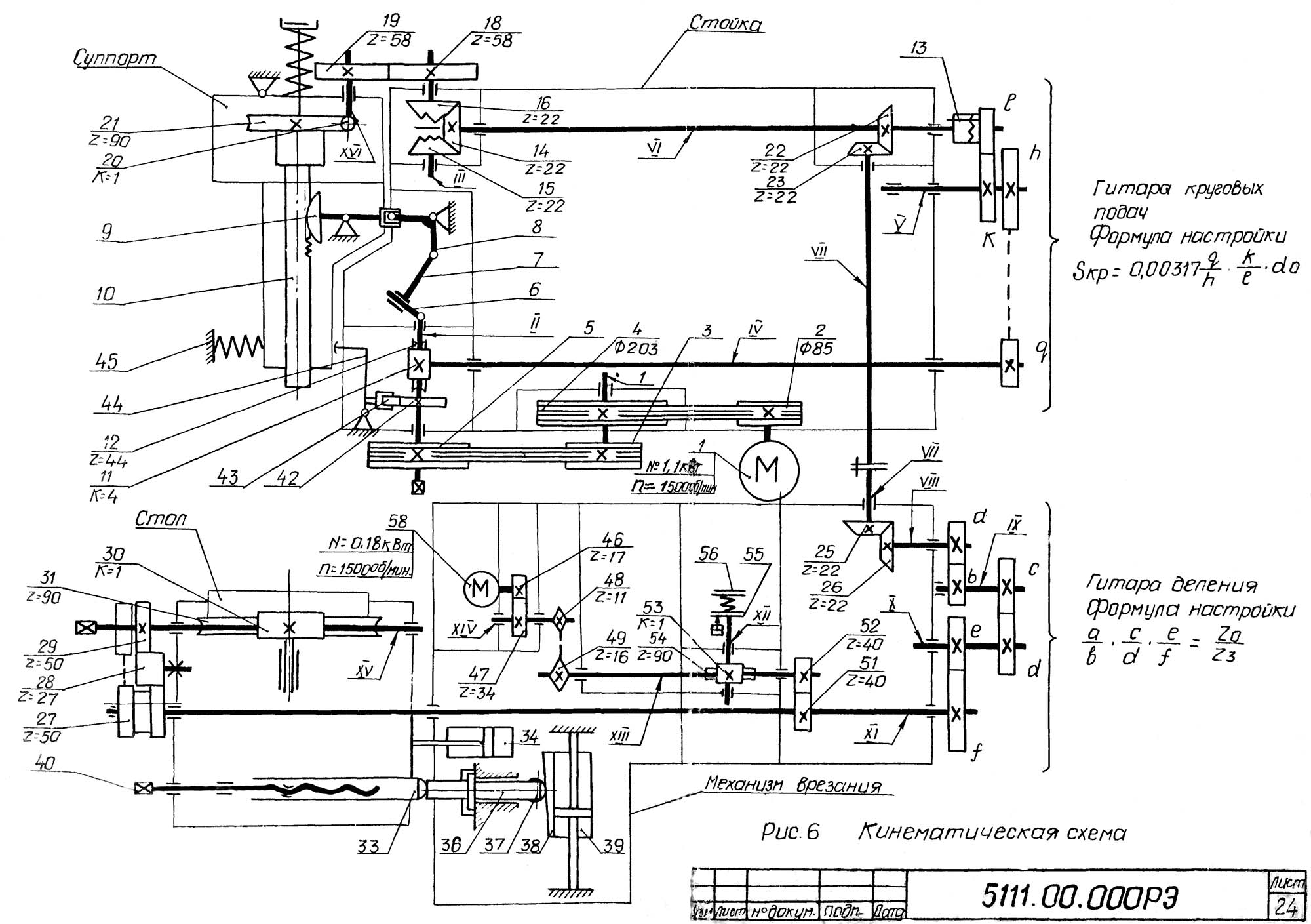 Схема кінематична зубодолбежного верстата напівавтомату 5111