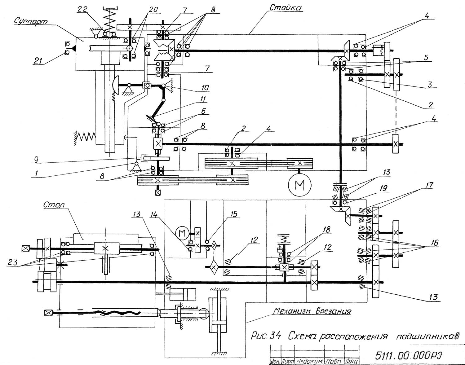 Схема розположення підшибників качения на зубодолбежном станке 5111. Дивитись у збільшеному масштабі