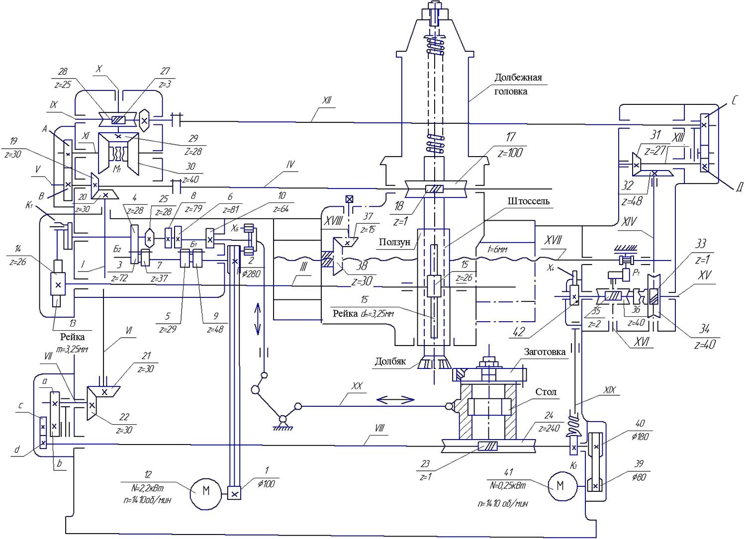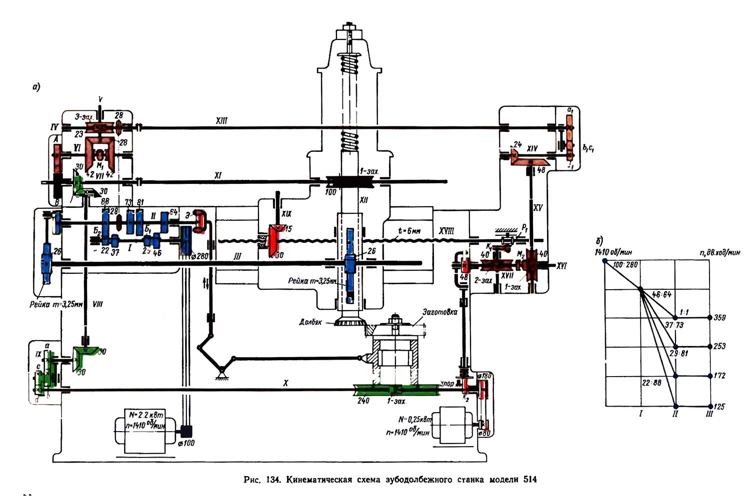 Схема кінематична і налаштування зубодолбежного верстата 514