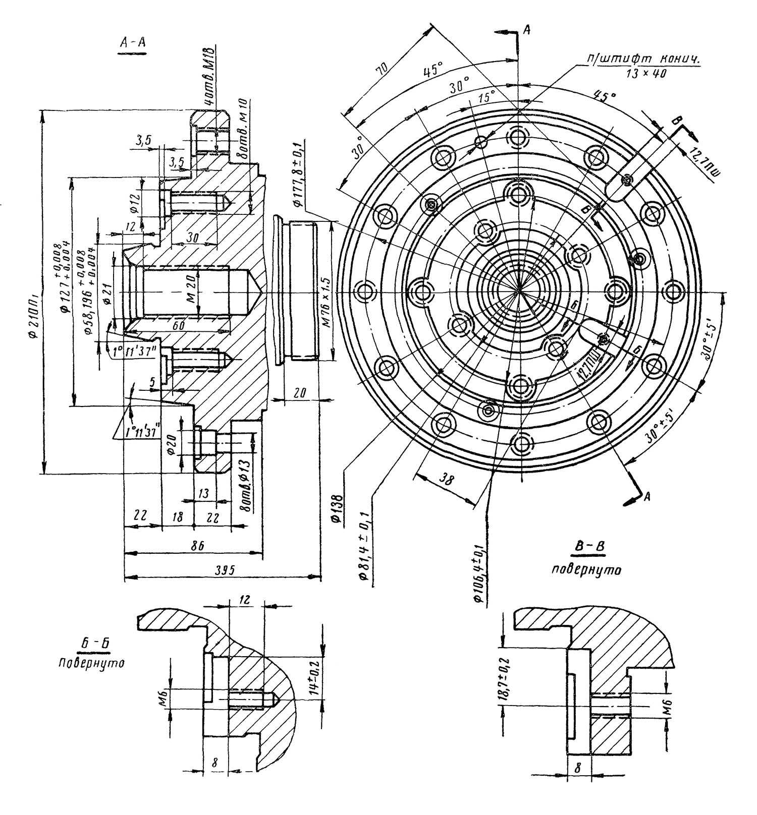 Угол внутреннего конуса (начального конуса), град 4°..90° 5°30`..84°