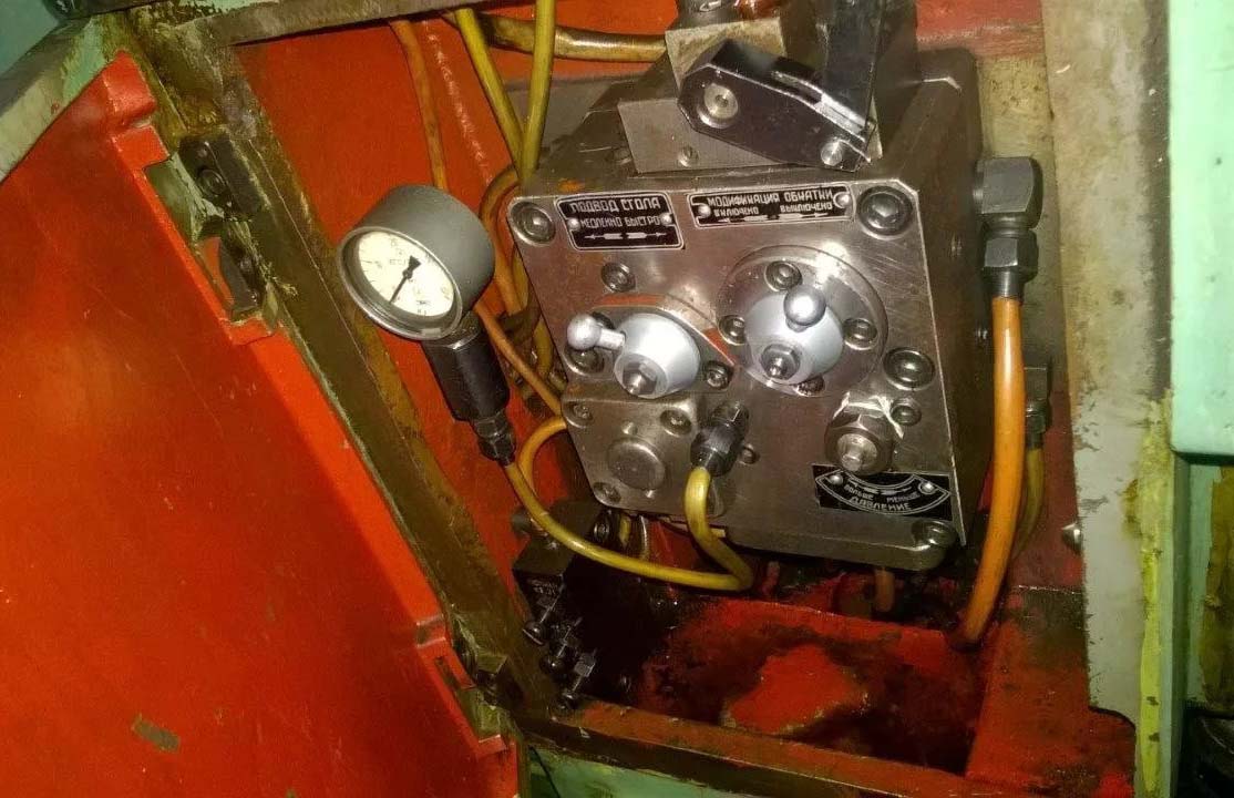 Перемещение стола з обрабатываемой заготовкой, крепление заготовки на оправке в шпинделе бабки вироби і переключение фрикционной муфты осуществляется гідроприводом.