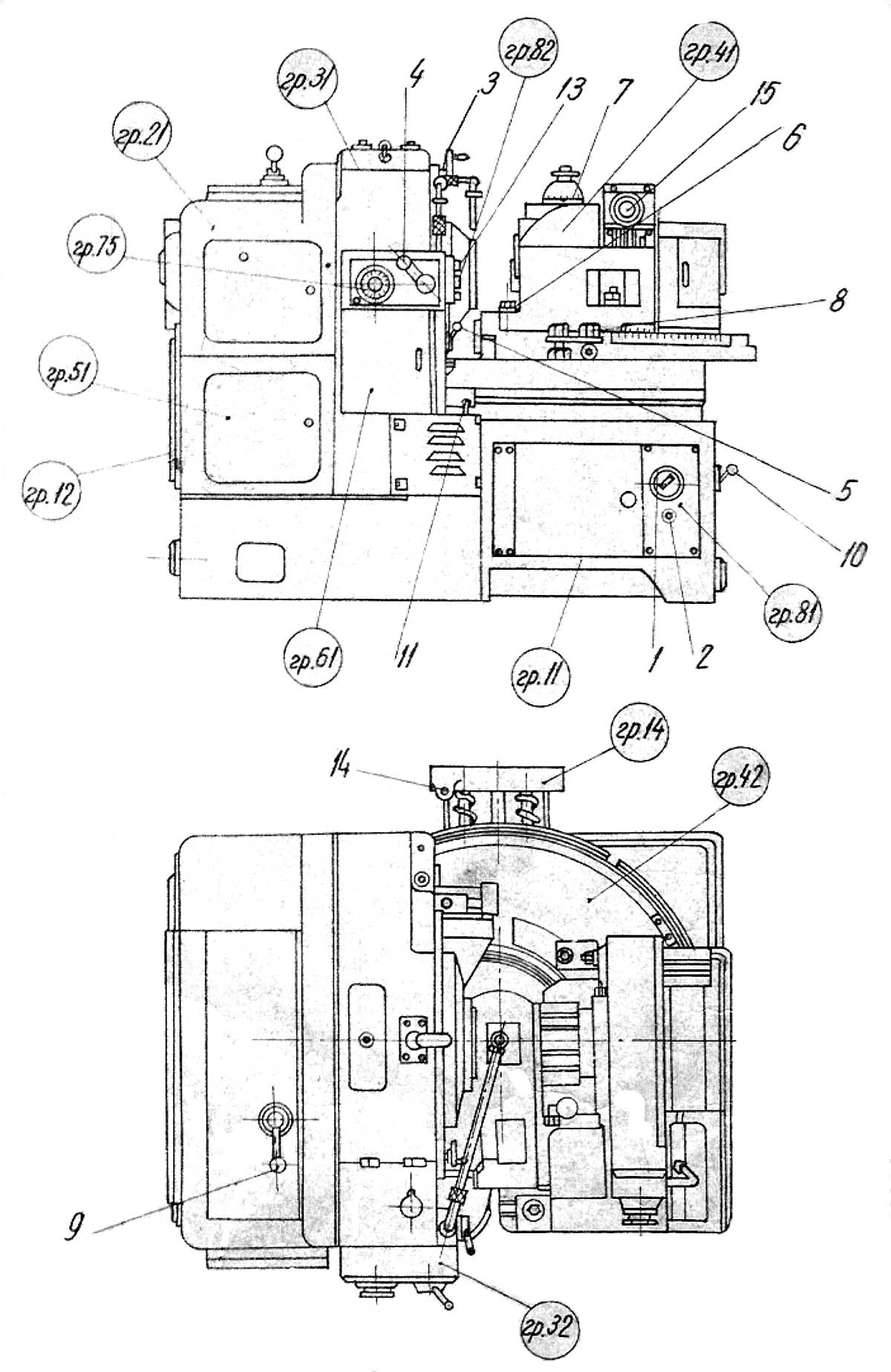 Розташування складових частин зуборезного напівавтомату 525. Дивитись у збільшеному масштабі