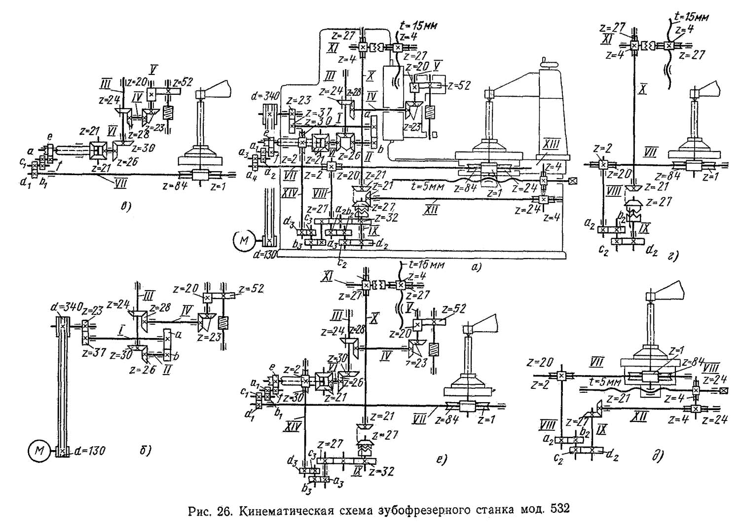 2. Схема кінематична зубофрезерного верстата 532. Дивитись у збільшеному масштабі