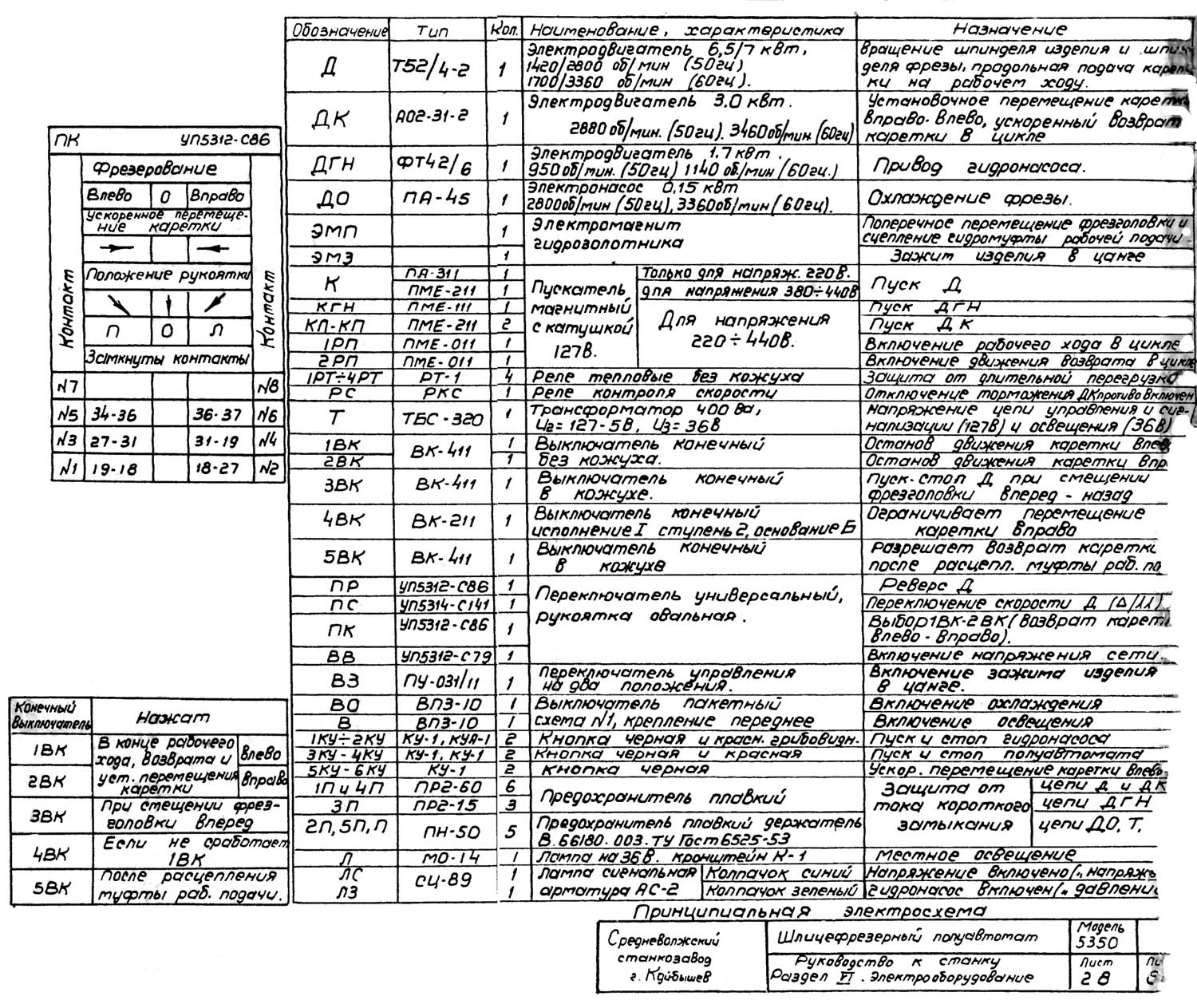 Схема електрична шлицефрезерного верстата 5350А. Дивитись у збільшеному масштабі