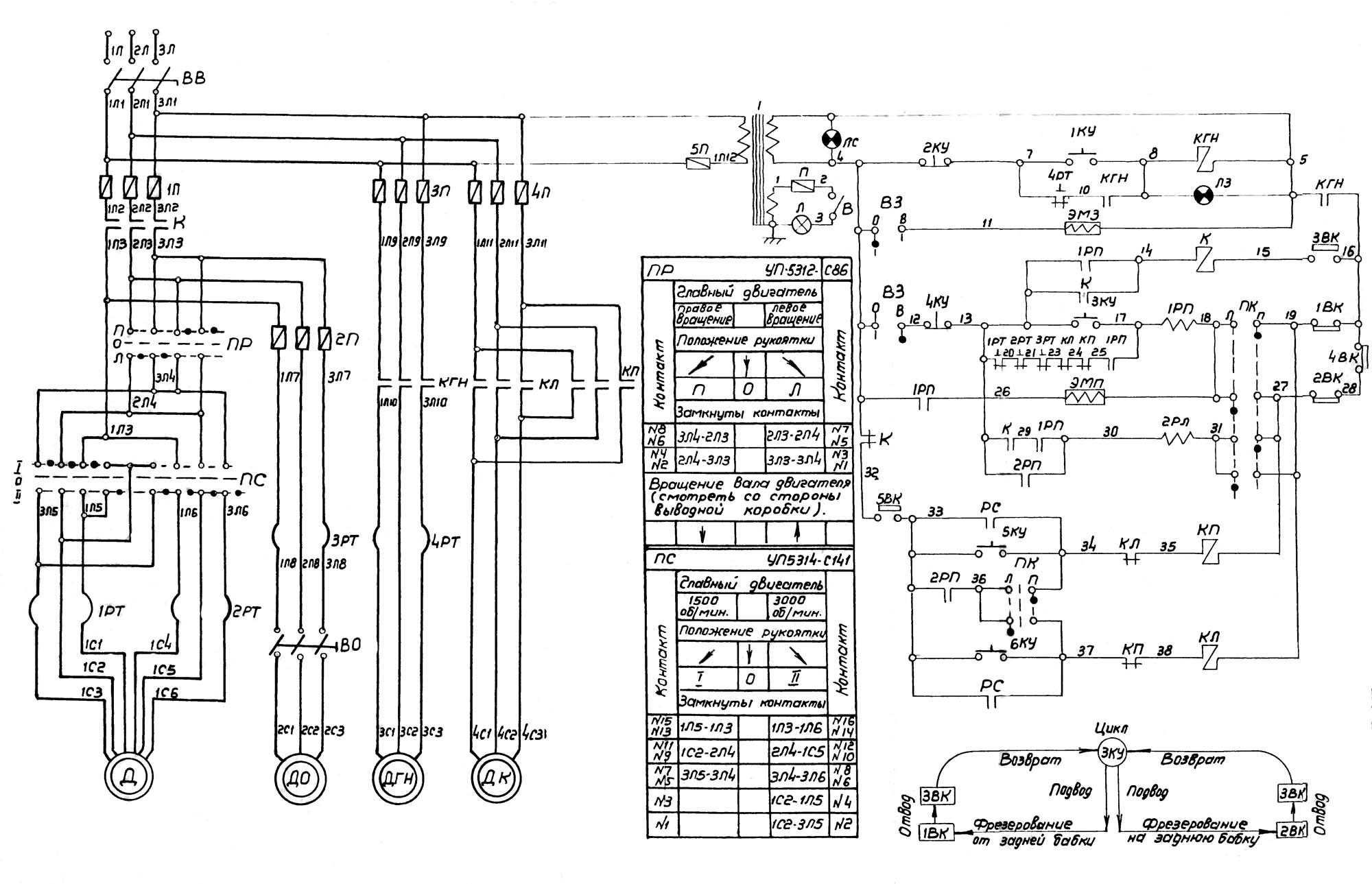 Електричналанцюг двигуна ускоренного ходу включается только тогда, когда произойдет відключення головного електродвигуна. И, наоборот, увімкнення головного електродвигуна може быть осуществлено только при выключенном двигателе швидкого ходу каретки.
