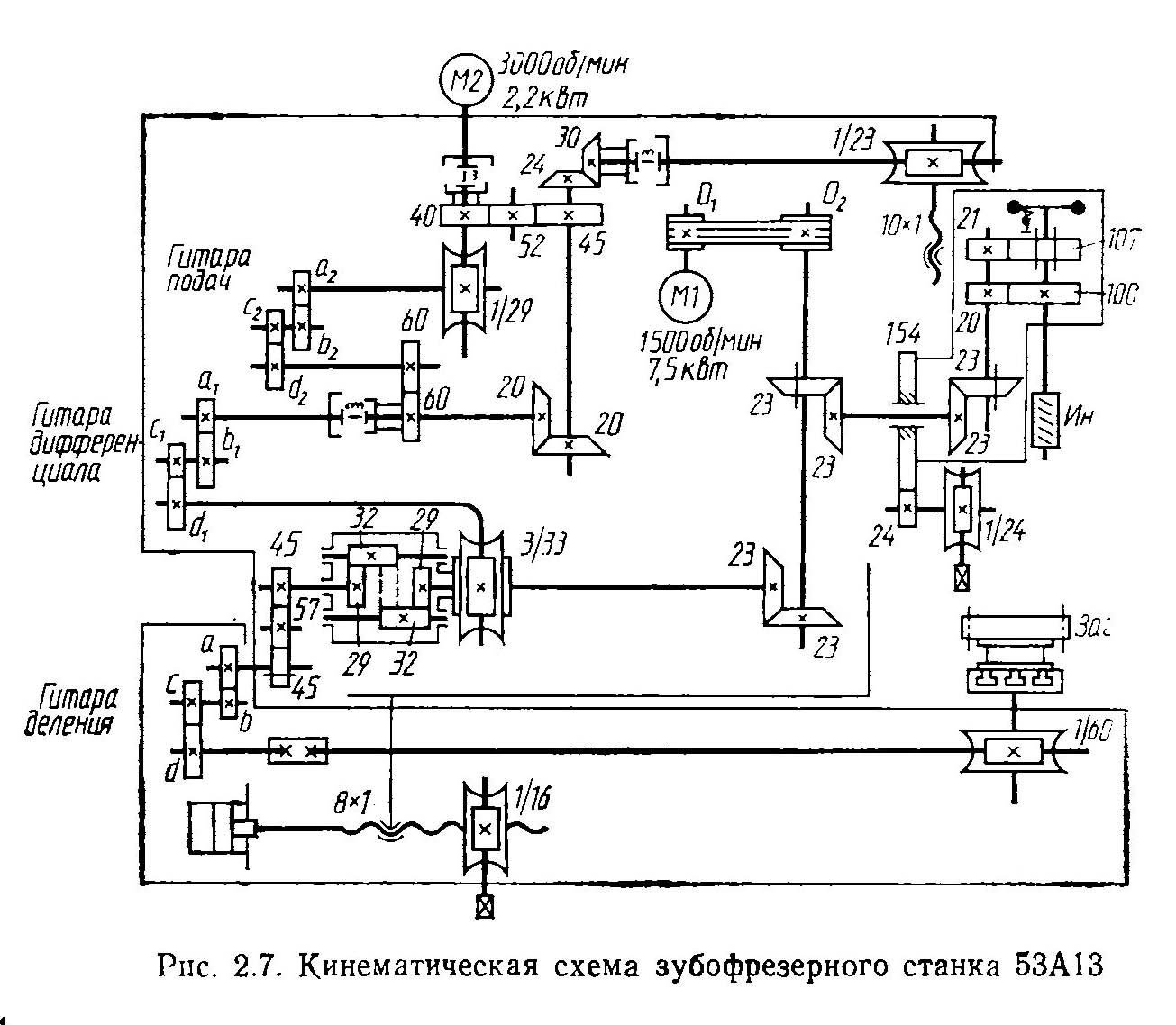 Кінематична схема зубофрезерного верстата 53А13