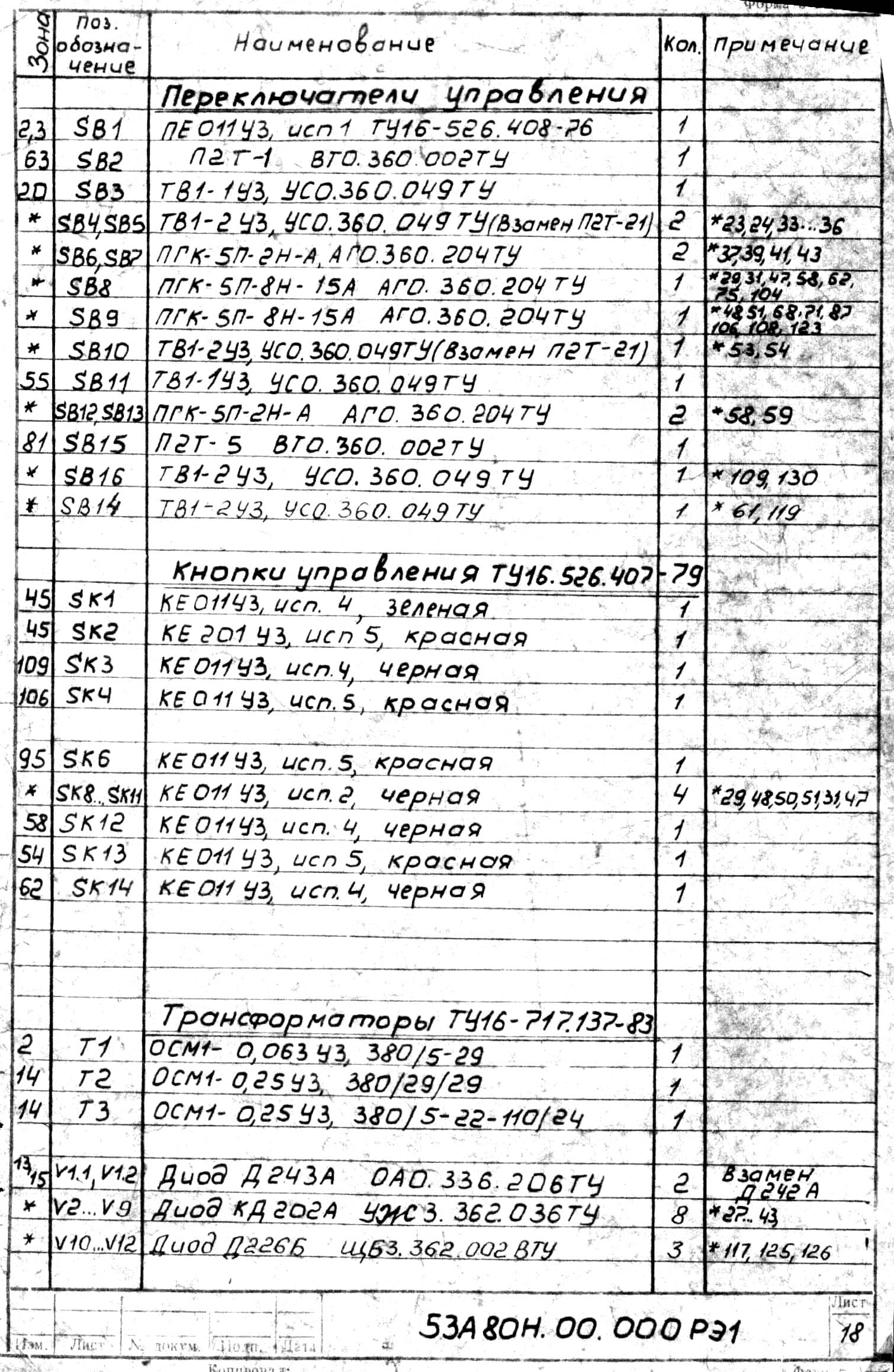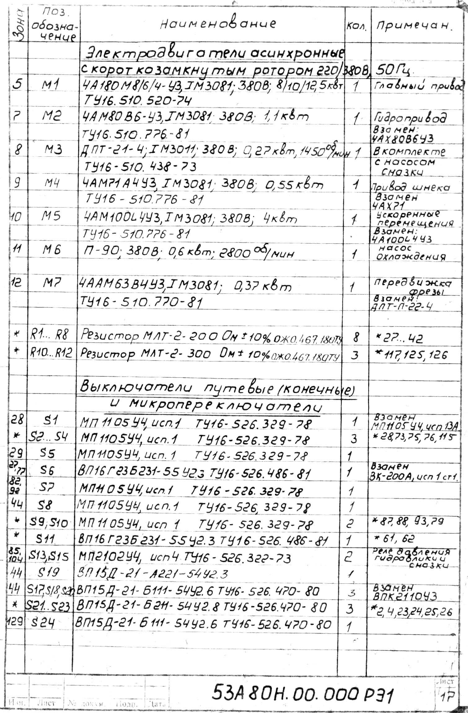 53А80 Специфікація складових частин зубофрезерного напівавтомату