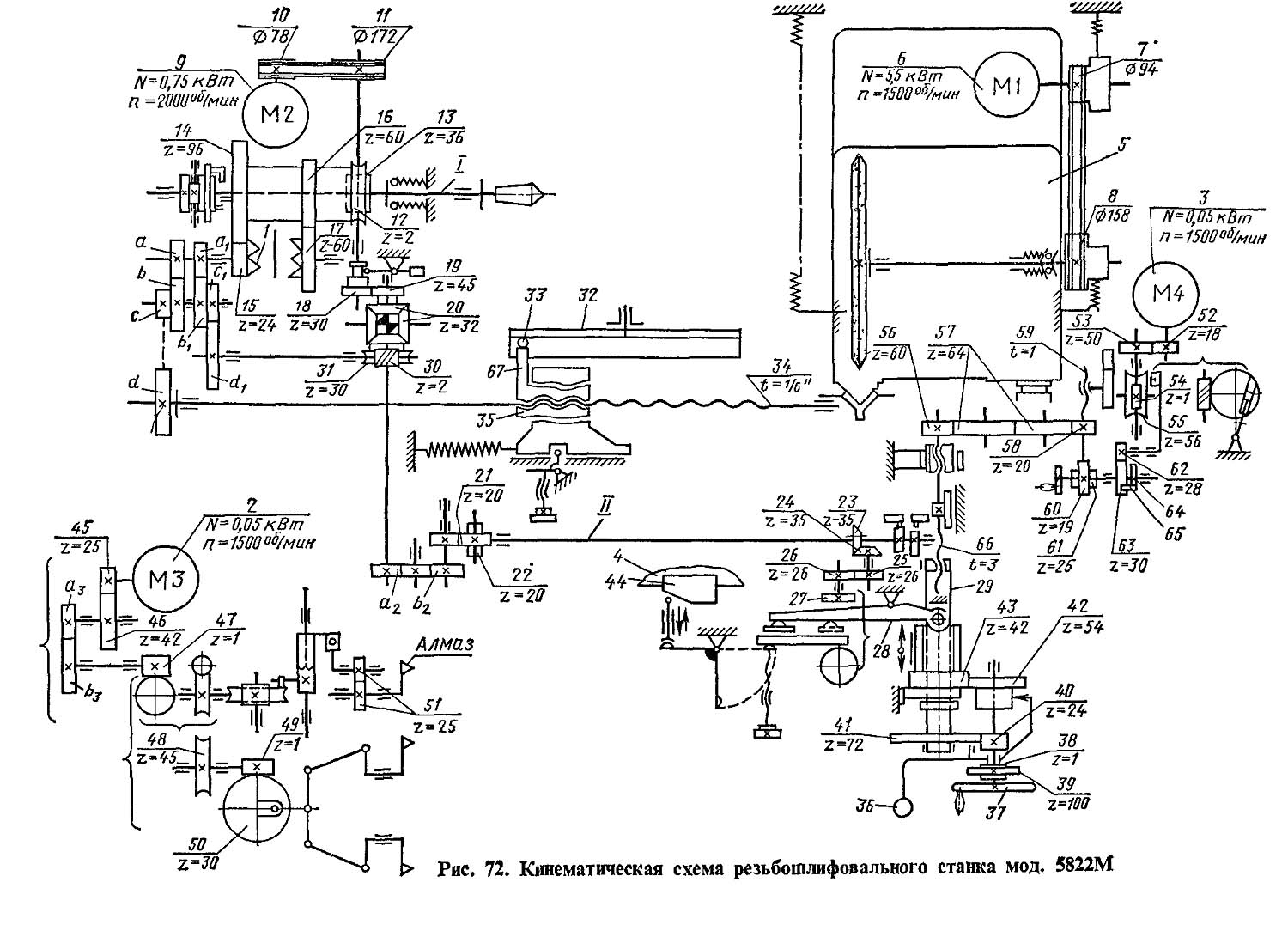 Схема кінематична резьбошлифовального верстата 5822М. Дивитись у збільшеному масштабі