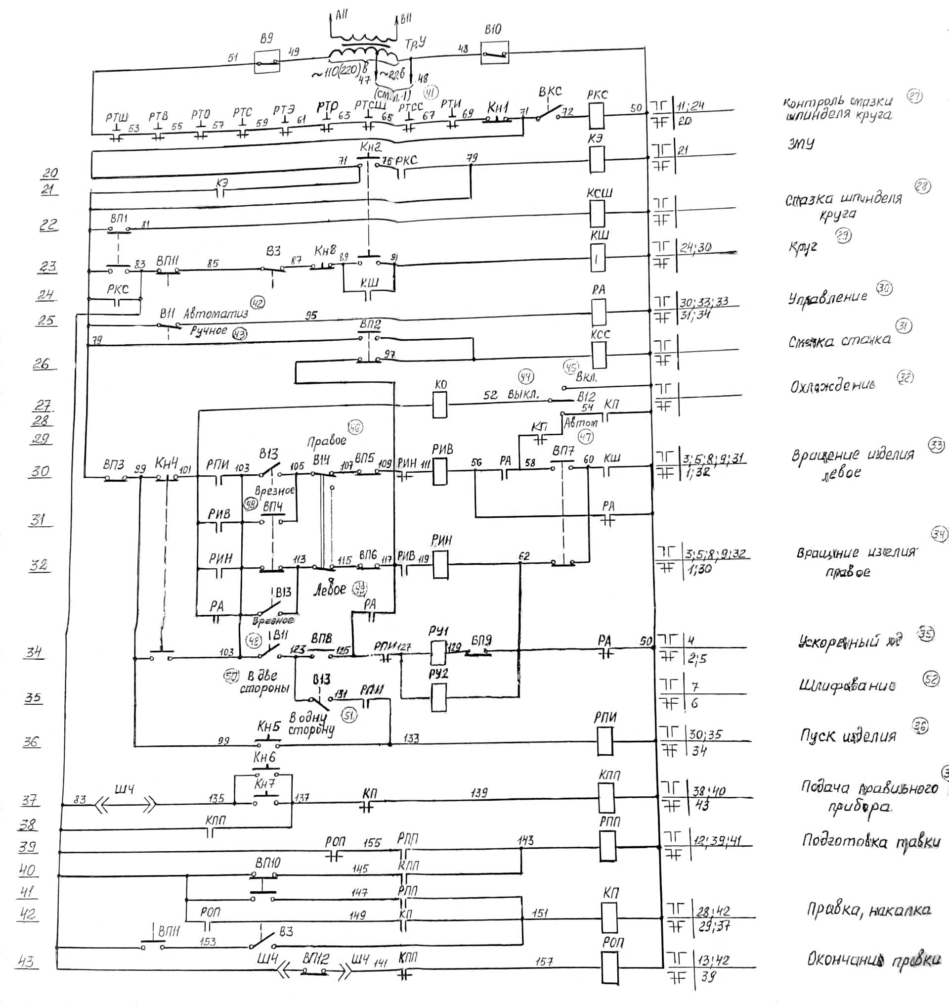 Електрична схема резьбошлифовального верстата 5822м. Дивитись у збільшеному масштабі