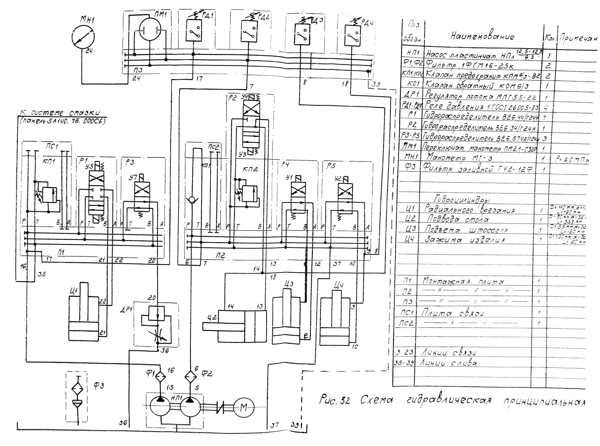 Гідравлічна схема зубодолбежного верстата 5а140п