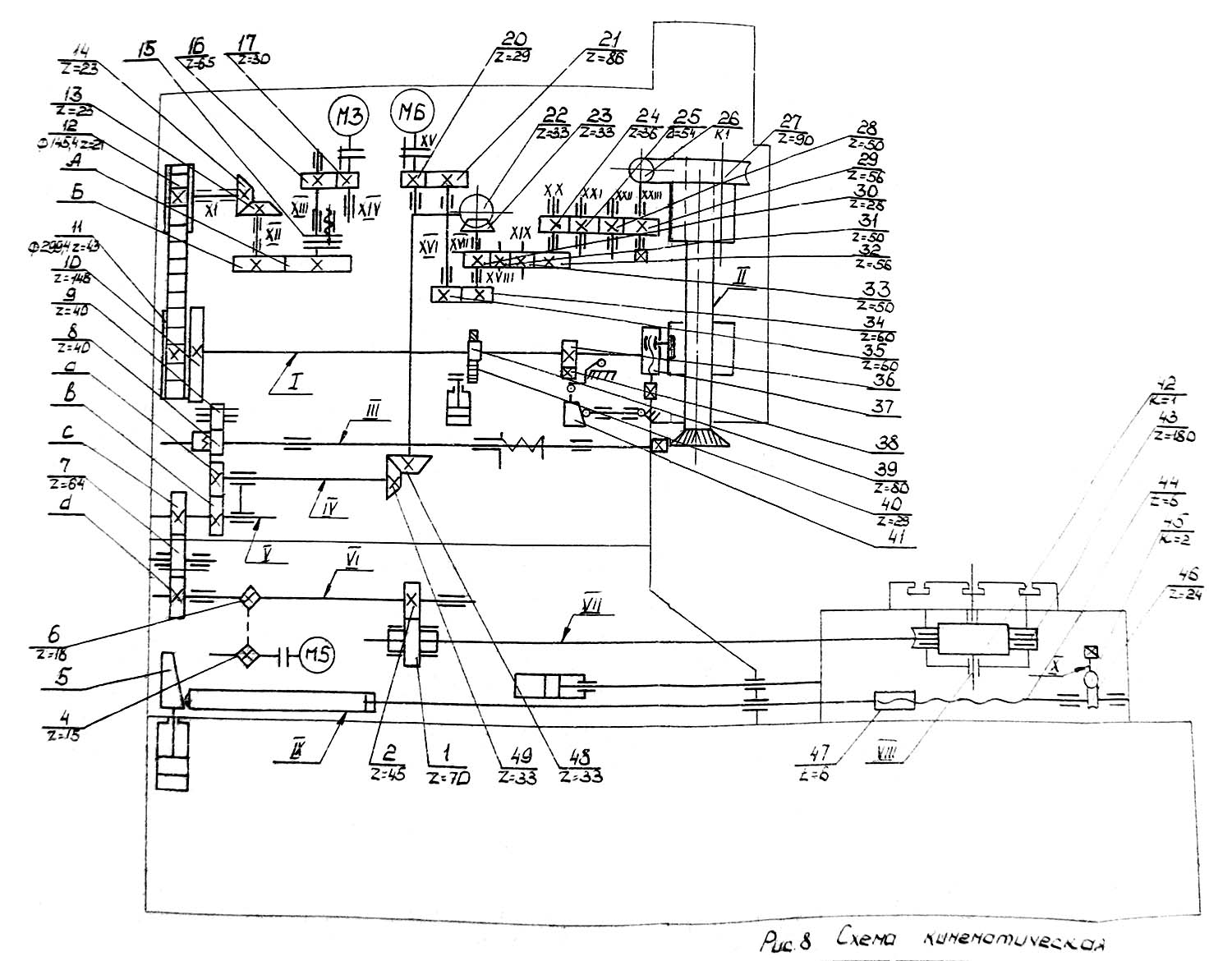 Схема кінематична зубодолбежного верстата напівавтомату 5А140п
