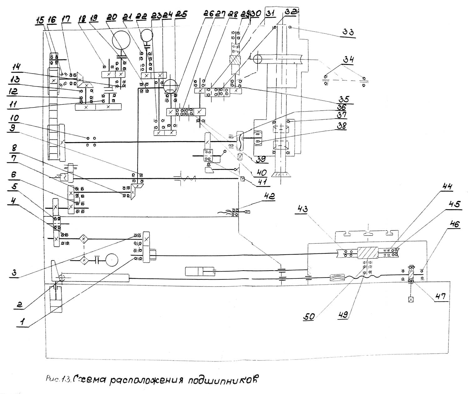 Схема розположення підшибників качения зубодолбежного верстата 5а140п