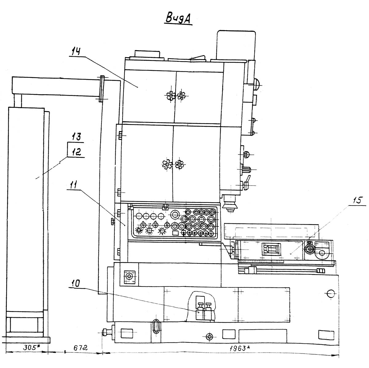 5А140п Розташування основних вузлів зубодолбежного верстата