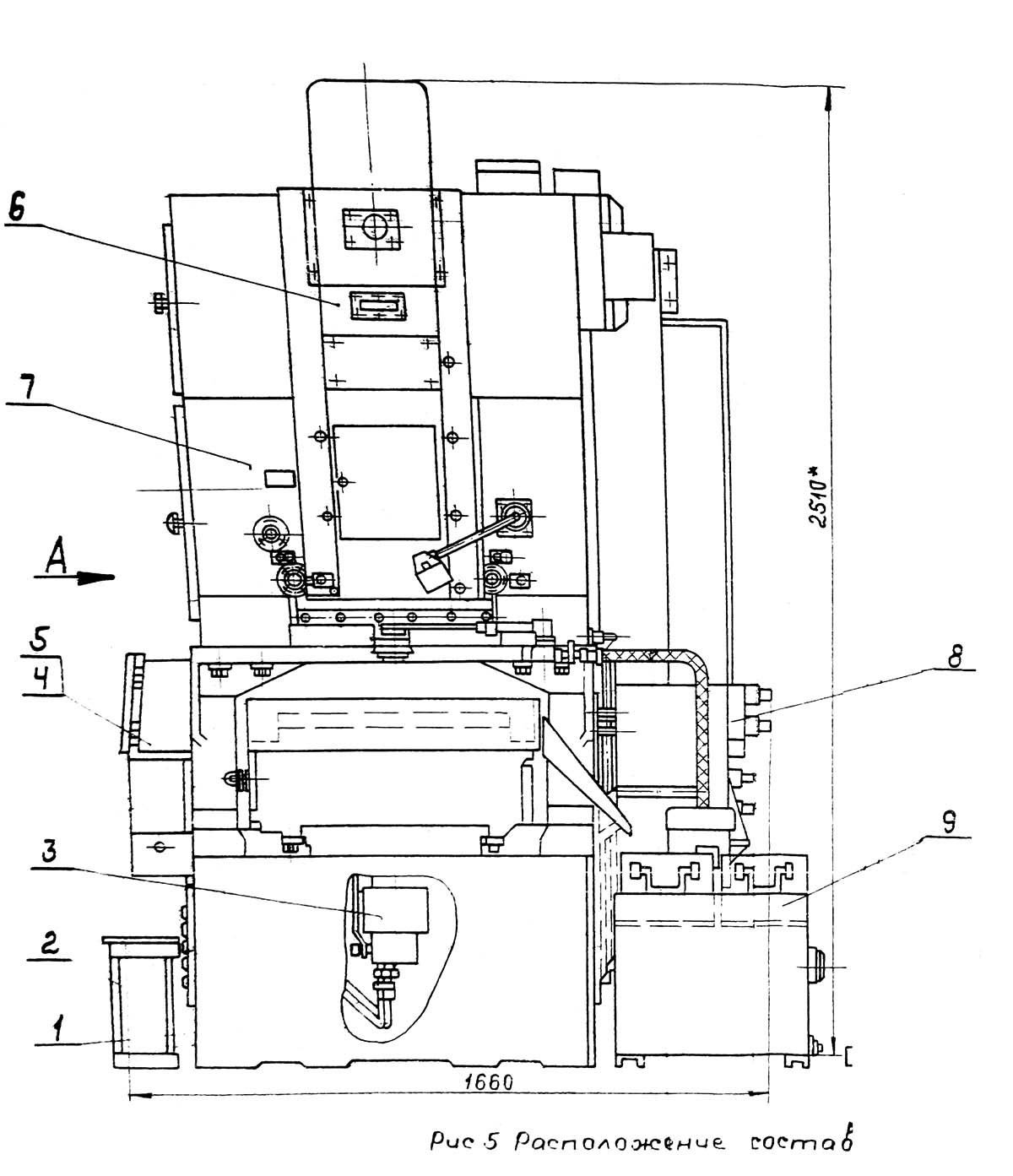 Розташування основних вузлів зубодолбежного верстата 5А140п. Дивитись у збільшеному масштабі