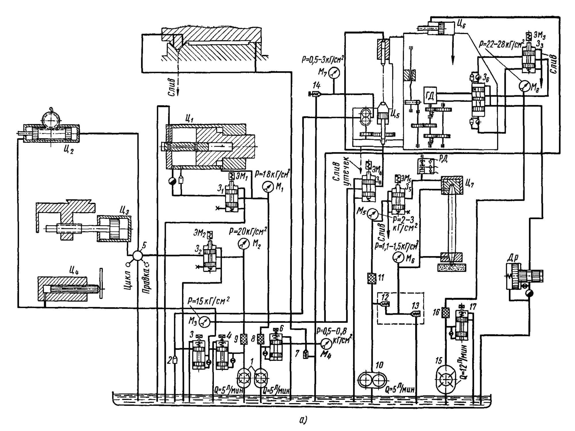 Гідравлічна схема зубошлифовального верстата 5А832