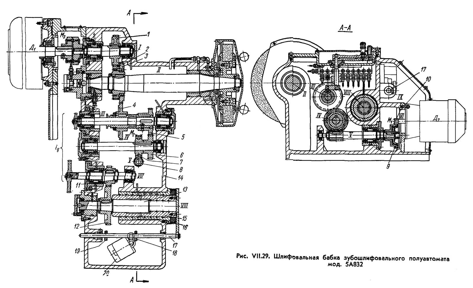 Шлифовальная бабка зубошлифовального верстата 5А832. Дивитись у збільшеному масштабі