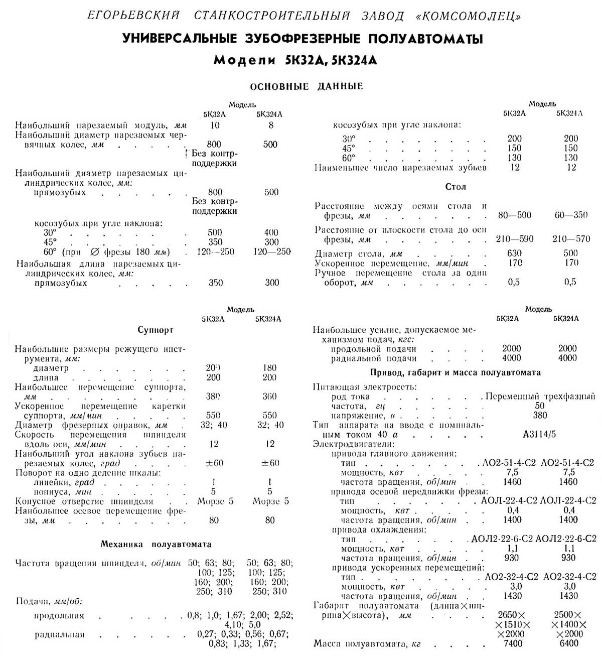 Зубофрезерные верстати універсального типа 5К324А і 5К32А упрощены; в них вместо, непрерывного осьового переміщення фрезы предусмотрено автоматическое периодическое перемещение в кінці каждого цикла нарізання. Верстати предназначены для роботи в условиях серийного і массового производства.