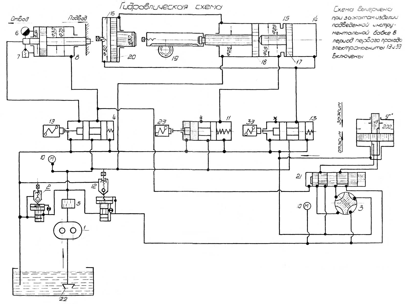 Гідравлічна схема зубозакругляющего верстата 5М580. Дивитись у збільшеному масштабі