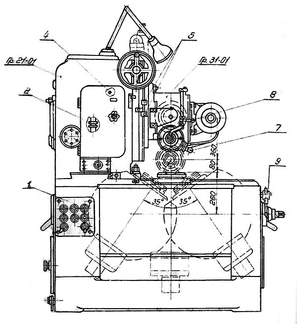 Налаштування зубозакругляющего верстата 5М580. Дивитись у збільшеному масштабі
