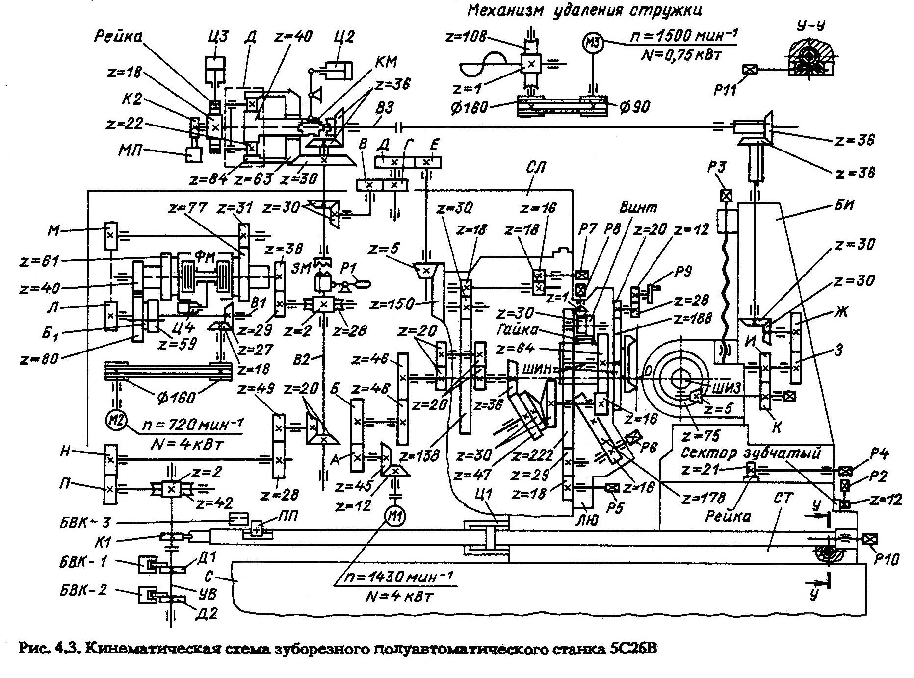 Схема кінематична зубострогального верстата 5С26В