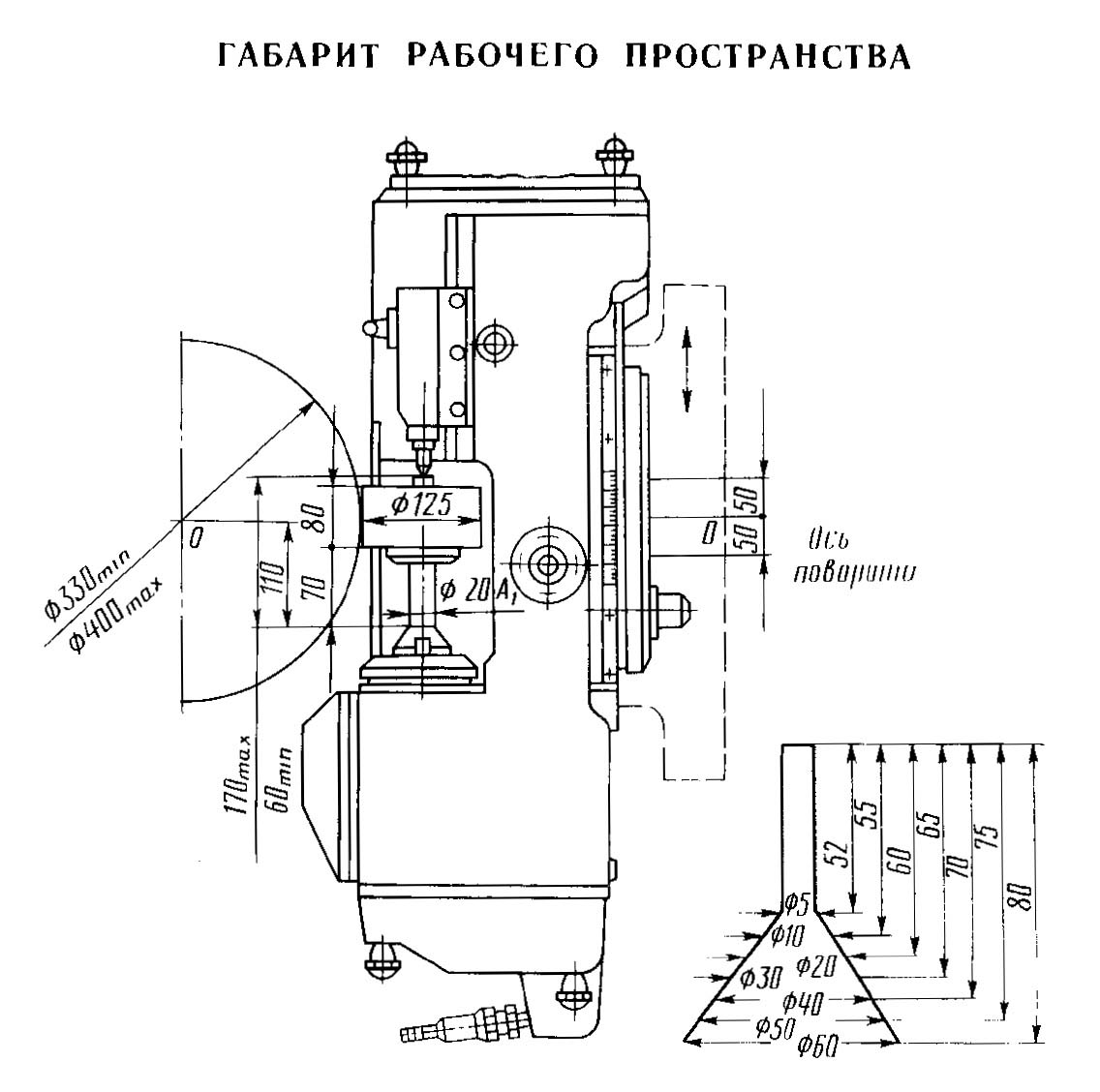 Габарит робочого простору зубошлифовального верстата 5В830. Дивитись у збільшеному масштабі