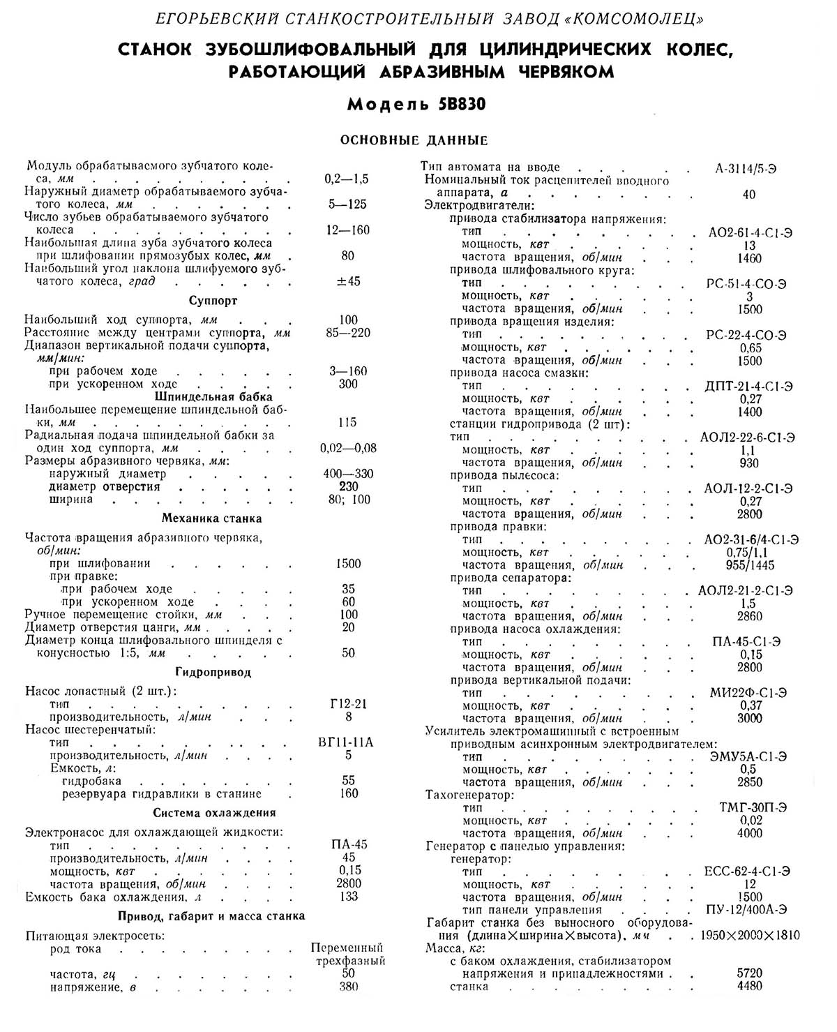 Производитель вертикального зубошлифовального верстата 5В830 Егорьевский станкостроительный завод Комсомолец, основанный в 1930 году.