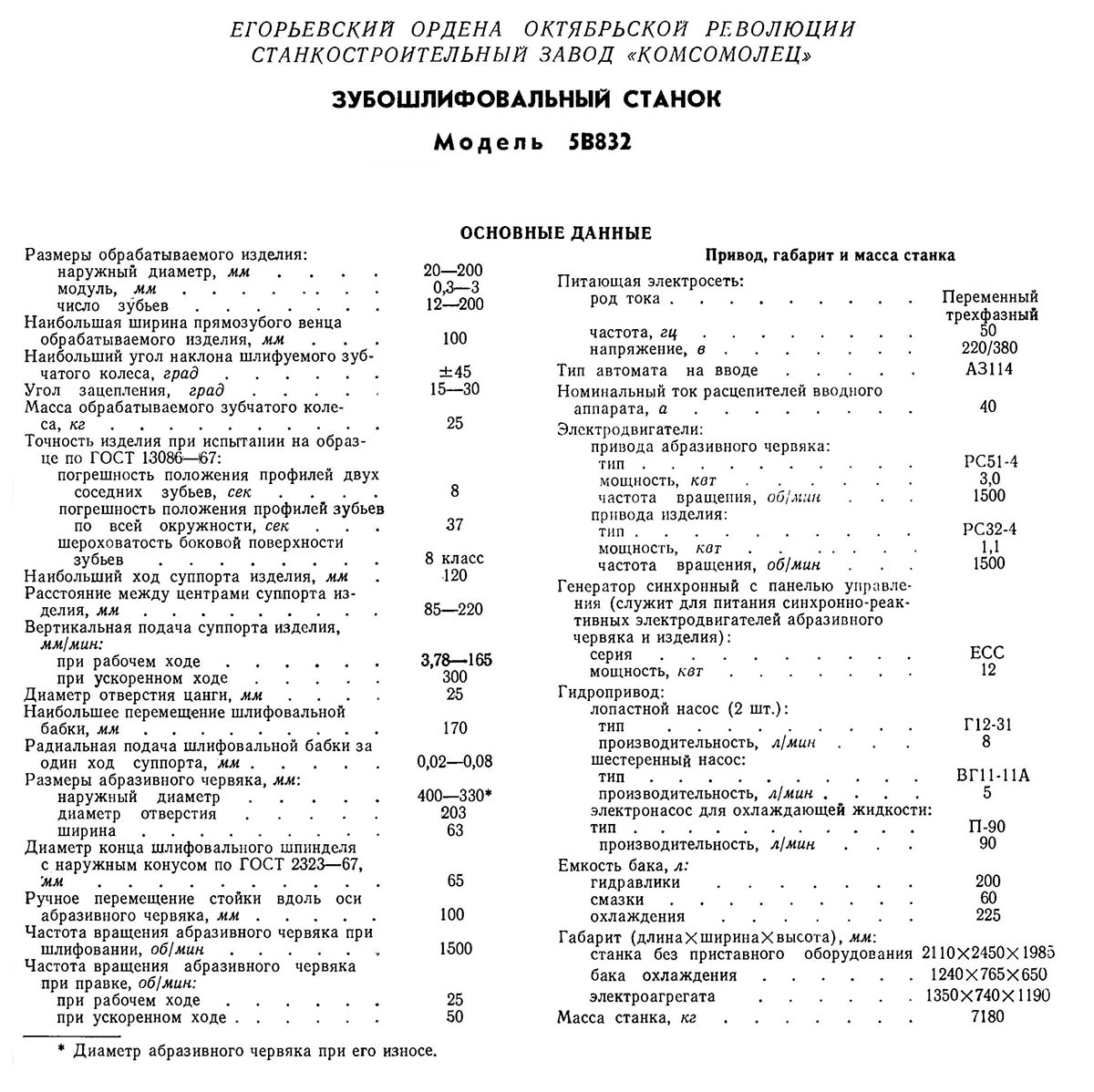 Производитель вертикального зубошлифовального верстата 5В832 Егорьевский станкостроительный завод Комсомолец, основанный в 1930 году.