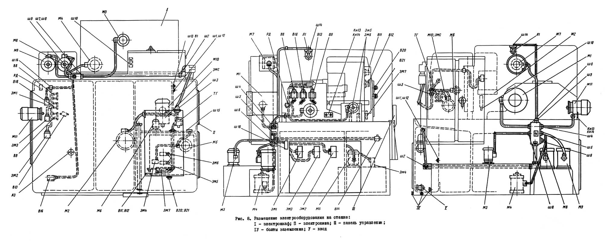 Все електрические соединения выполнены в соответствии з монтажной електросхемой верстата (см.рис.3, 4, 5)