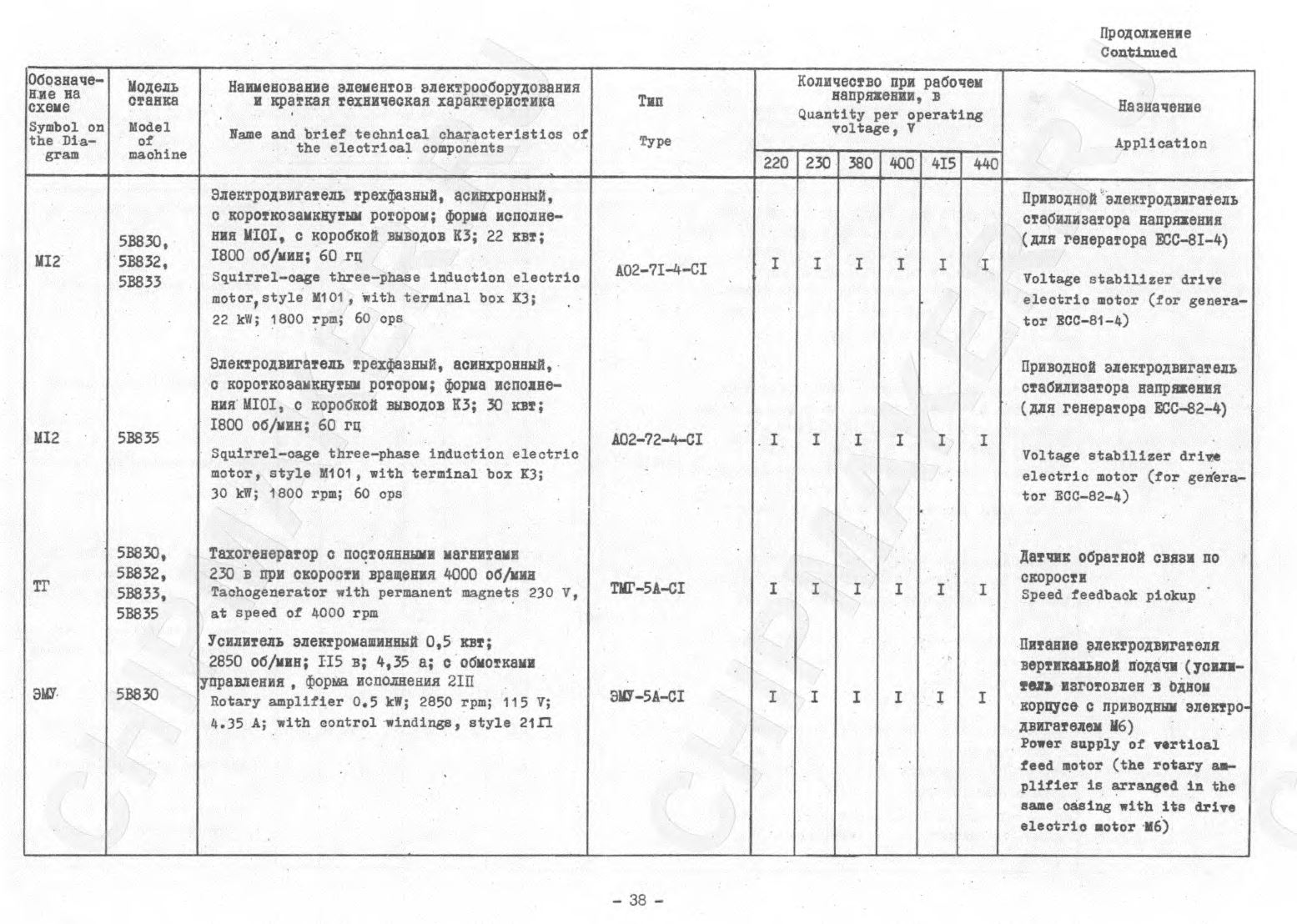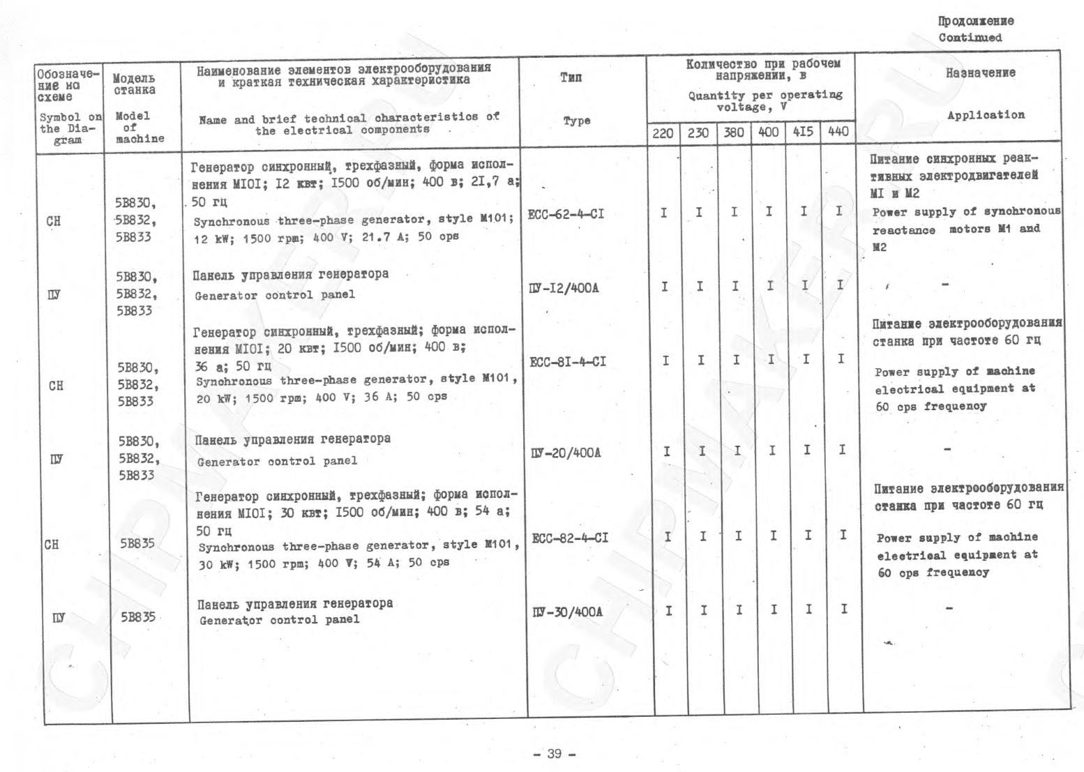 Верстати моделей 5В832, 5В833, 5В835 при напряжении ...в, частоте ...Гц: