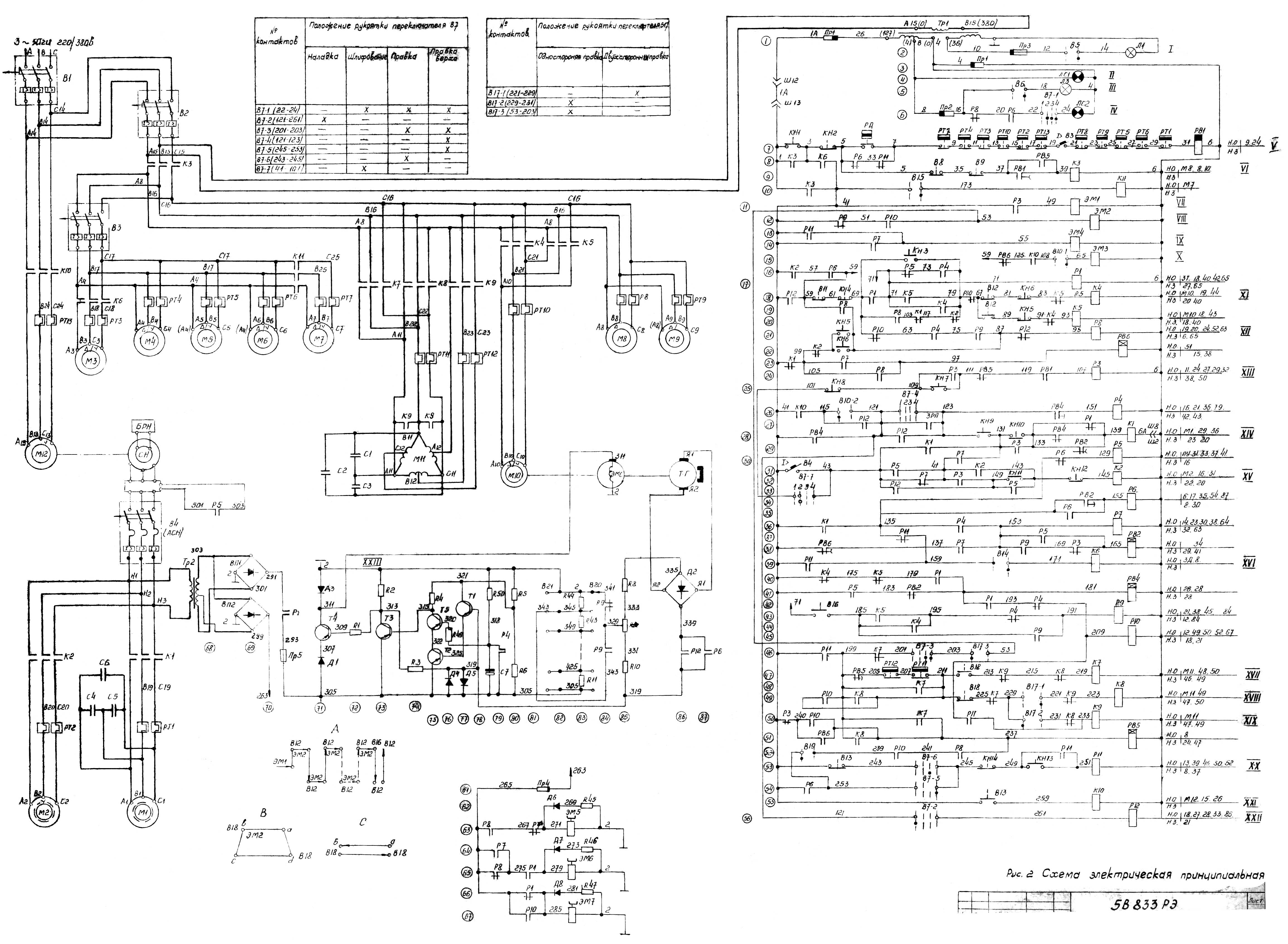Електрична схема зубошлифовального верстата 5в833. Дивитись у збільшеному масштабі