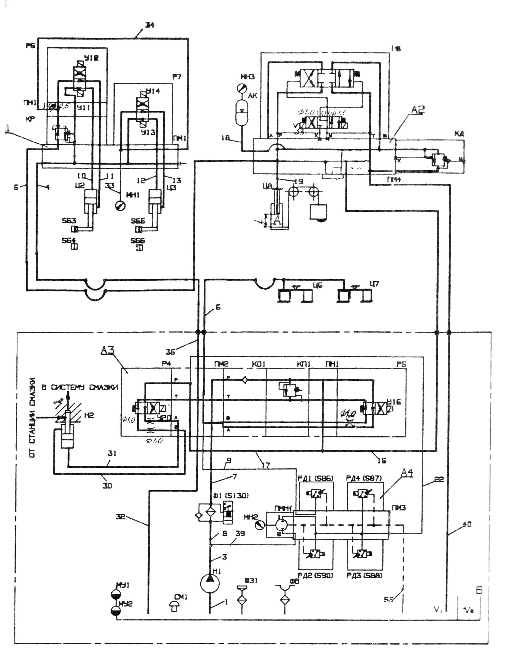Гідравлічна схема бесконсольного фрезерного верстата 65а80ф1