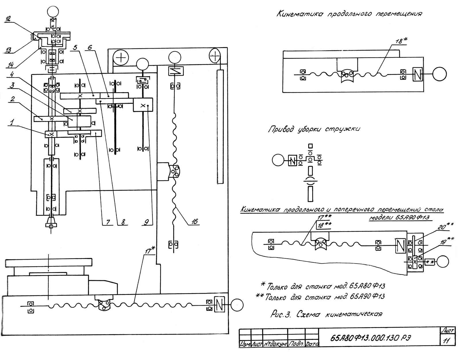 Кінематична схема бесконсольного фрезерного верстата 65А80Ф1