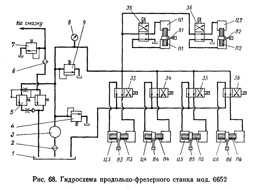 1. Гідравлічна схема фрезерного верстата 6652. Дивитись у збільшеному масштабі