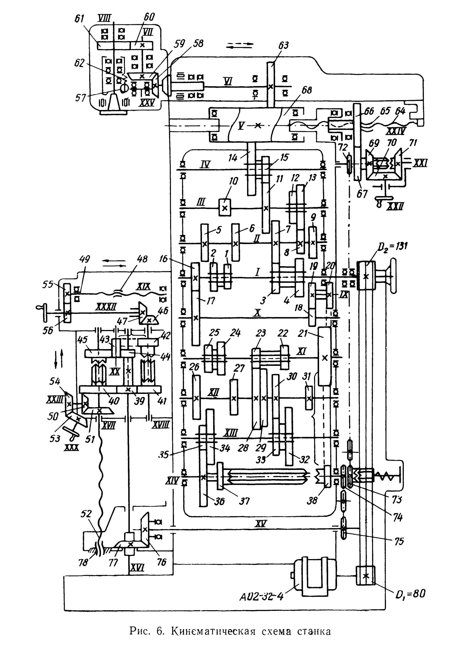 Схема кінематична фрезерного верстата 676. Дивитись у збільшеному масштабі