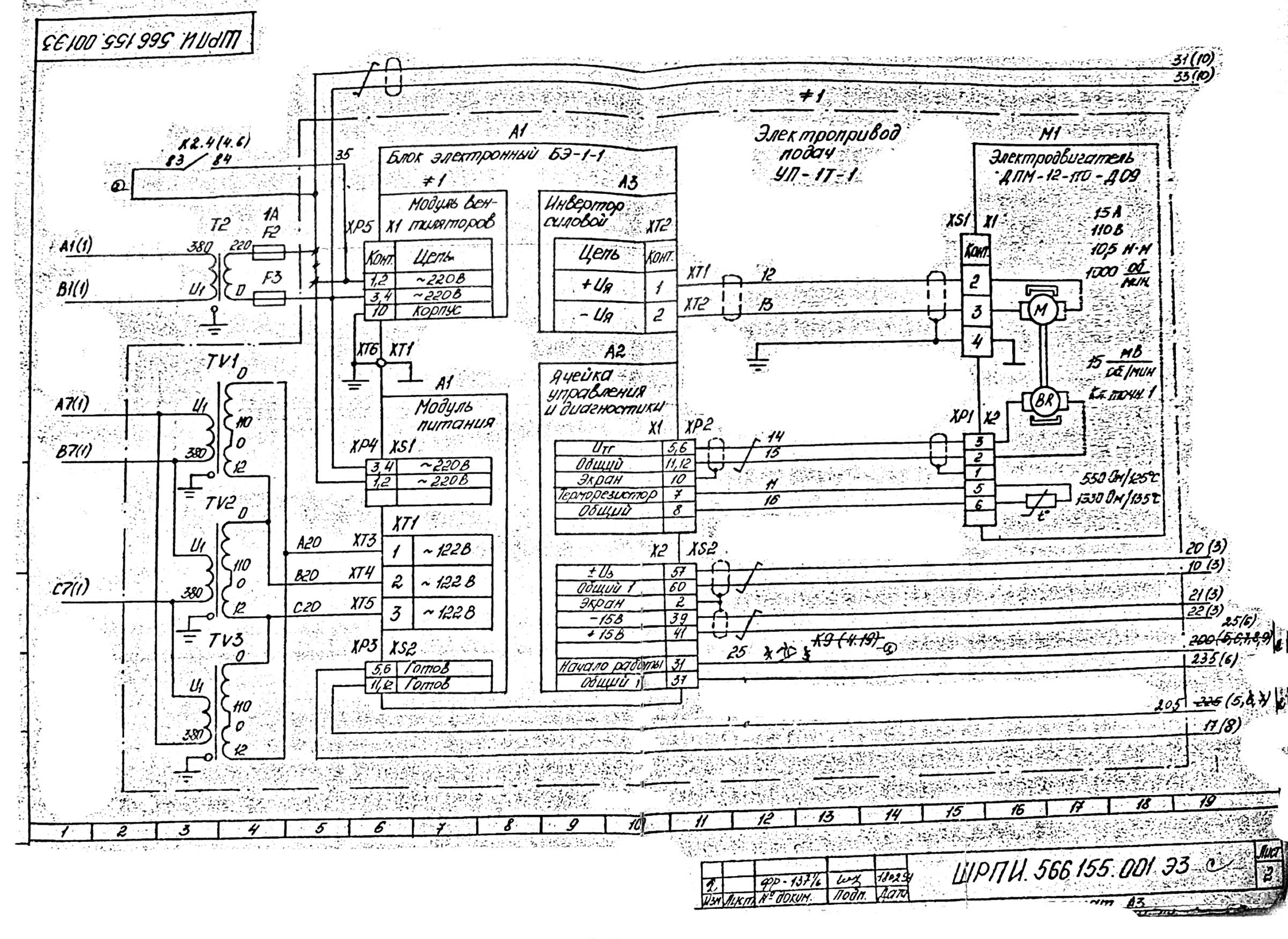 В управлении верстатом использованы наступні величины напряжений:
