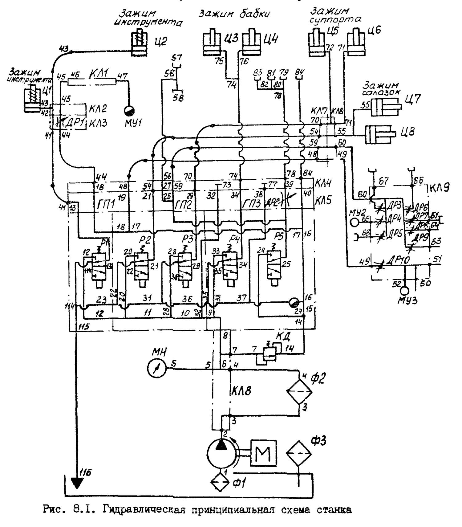 Гідравлічна схема фрезерного верстата 67к25пф2