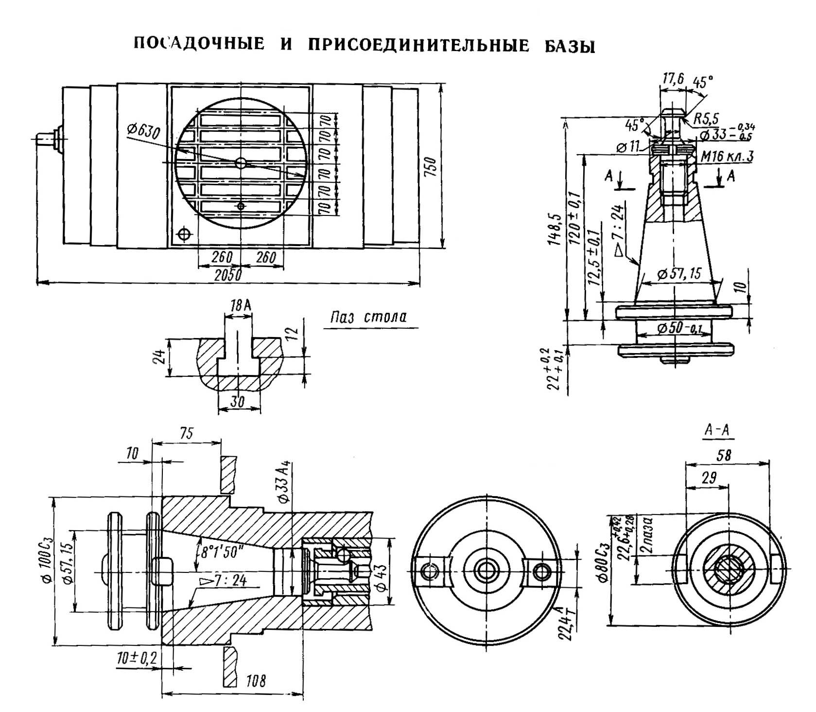6904ВФ2 Посадочные і присоединительные базы горизонтально-фрезерного верстата