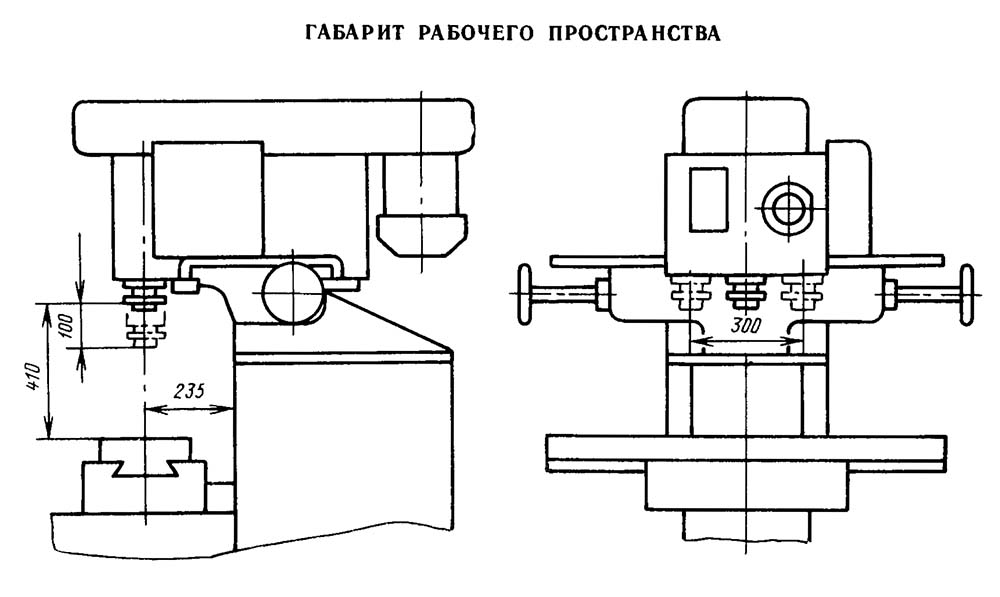 Габаритные розміри робочого простору шпоночно-фрезерного верстата 692Р