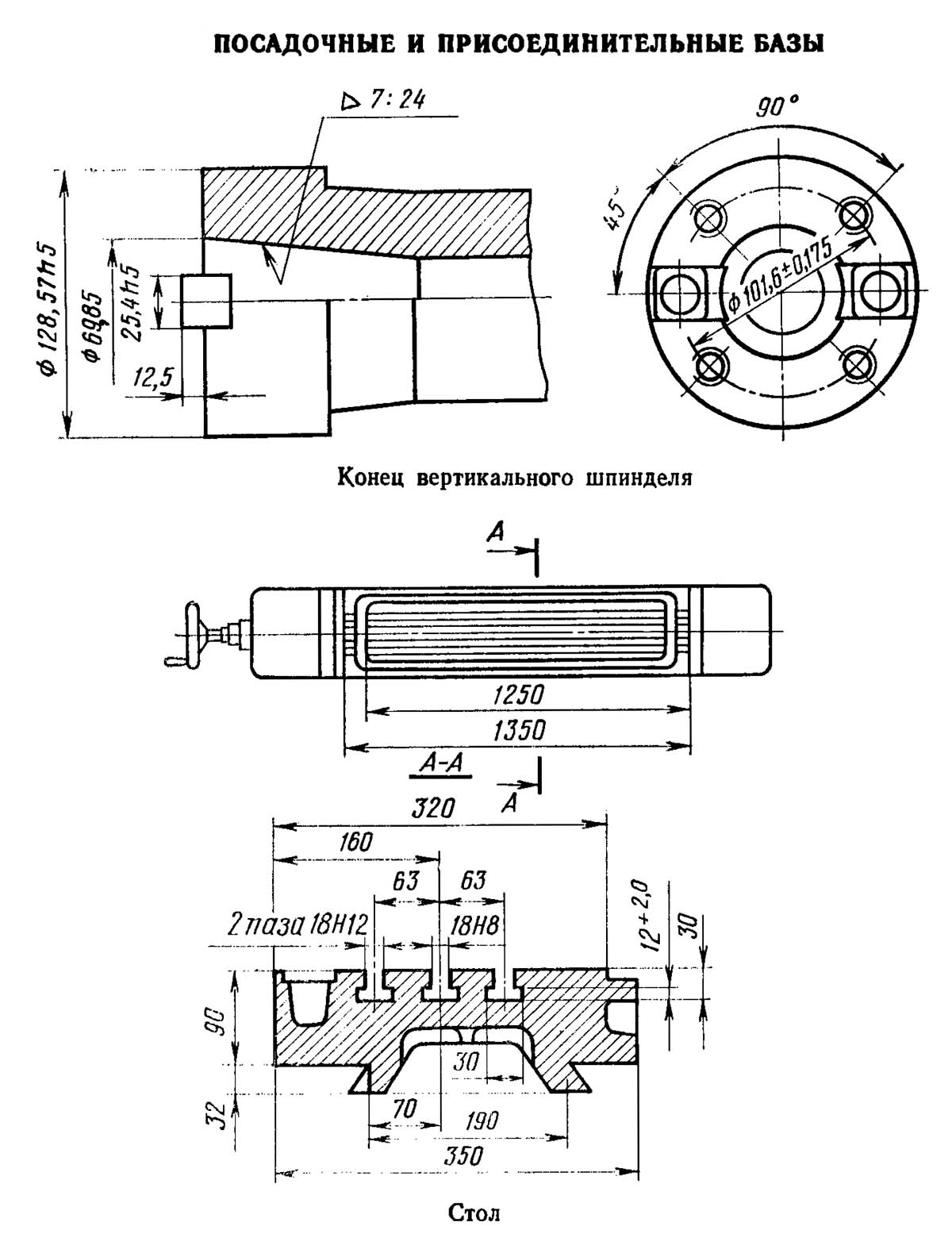 Посадочные і присоединительные базы вертикального консольно-фрезерного верстата 6Д12