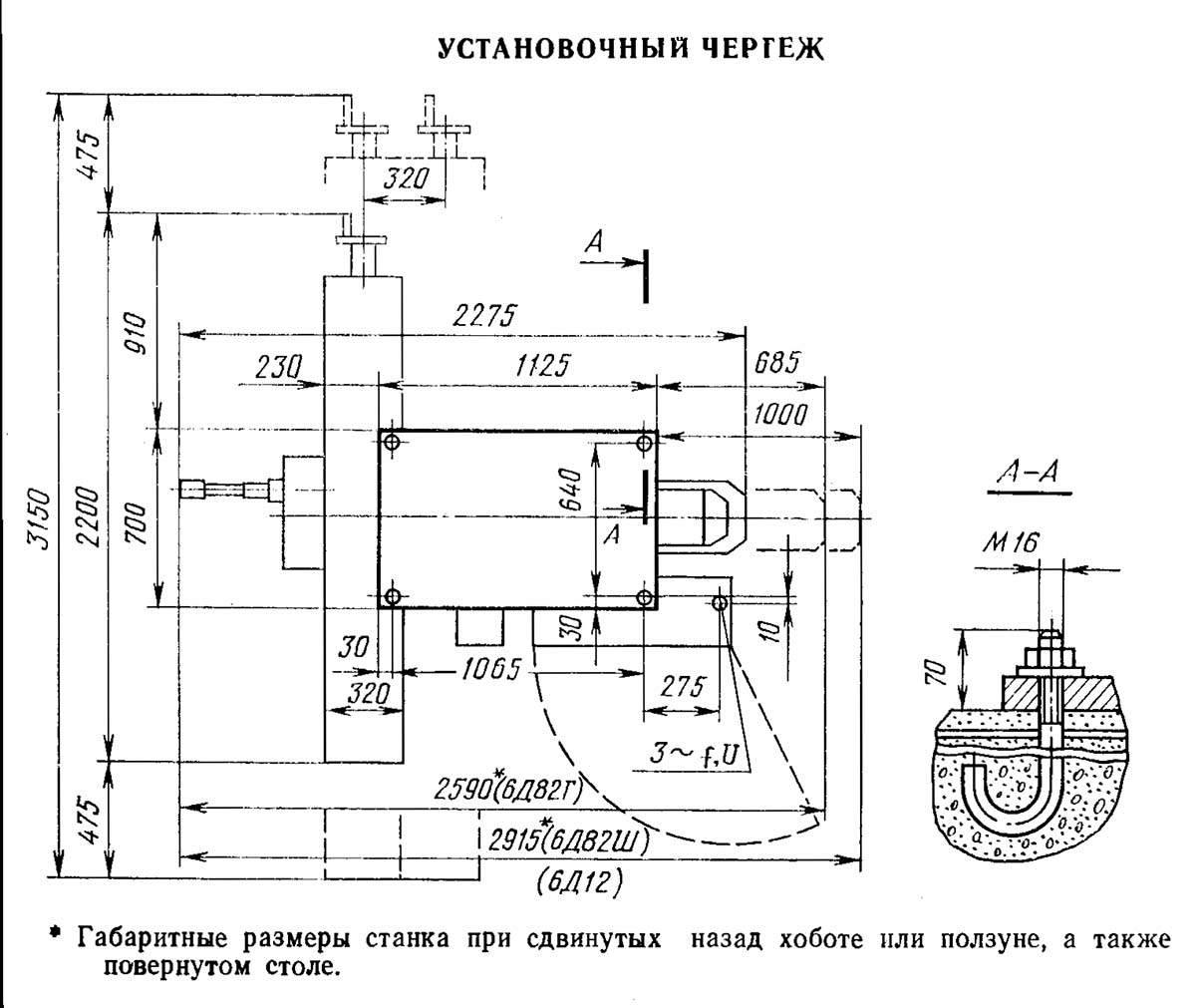 Настановне креслення вертикального консольно-фрезерного верстата 6Д12