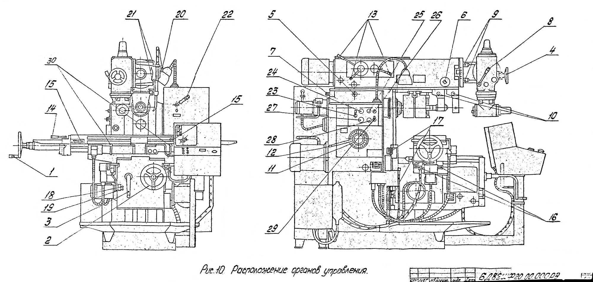 Розташування органів керування на фрезерном станке 6Д82ШФ20. Скачать в увеличенном масштабе