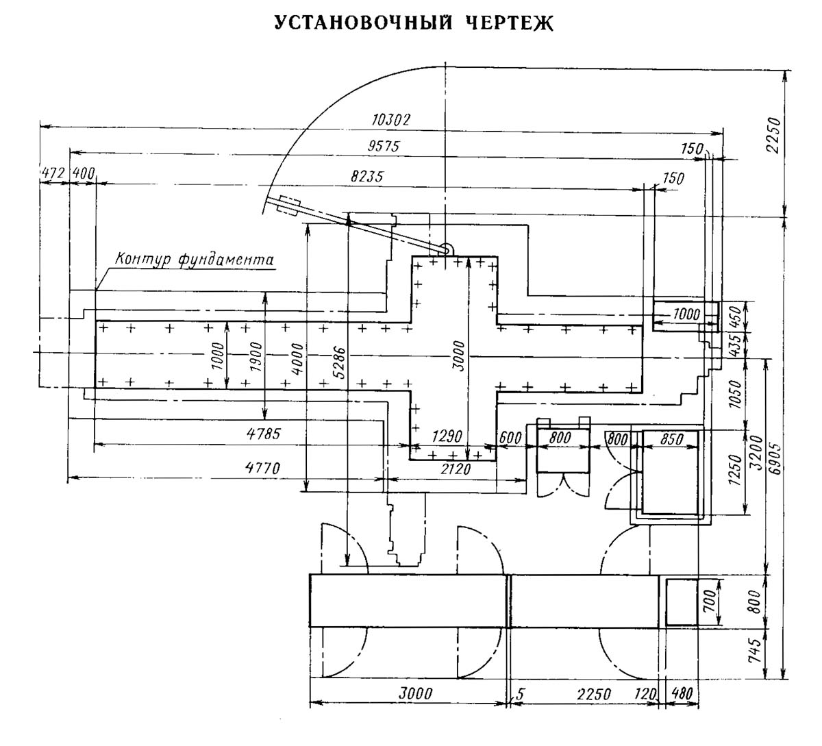 Креслення фундамента фрезерного верстата 6М610