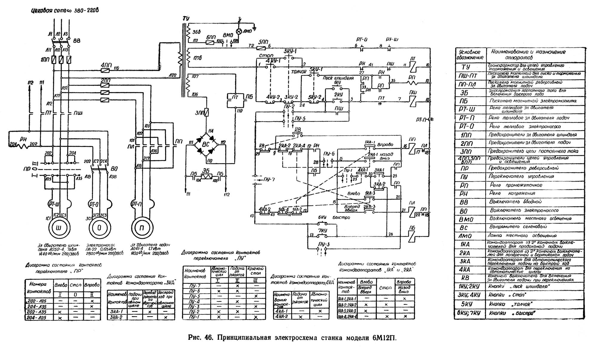Схема електрична принципова фрезерных верстатах 6М12П, 6М12ПБ, 6М82, 6М82Г, 6М82ГБ, 6М82Ш, 6М13П, 6М13ПБ, 6М83, 6М83Г, 6М83Ш