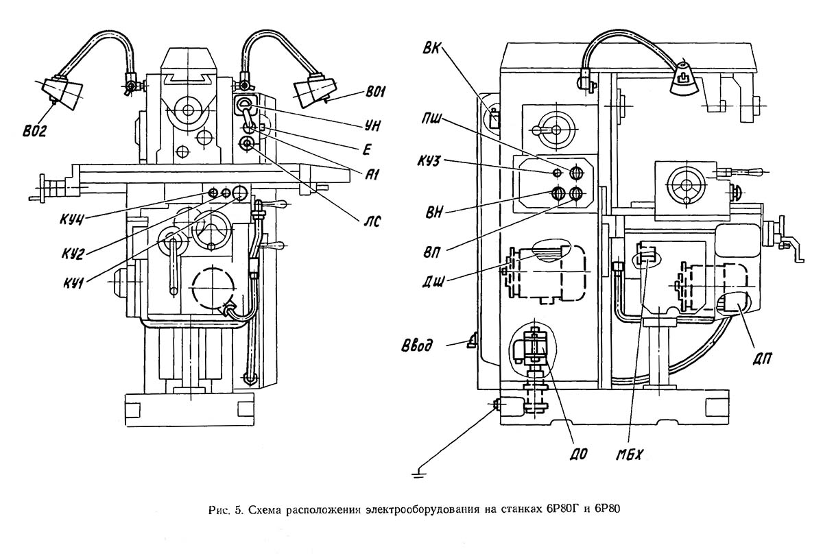 Cхема розположення електроустаткування на верстатах 6Р80, 6Р80Г