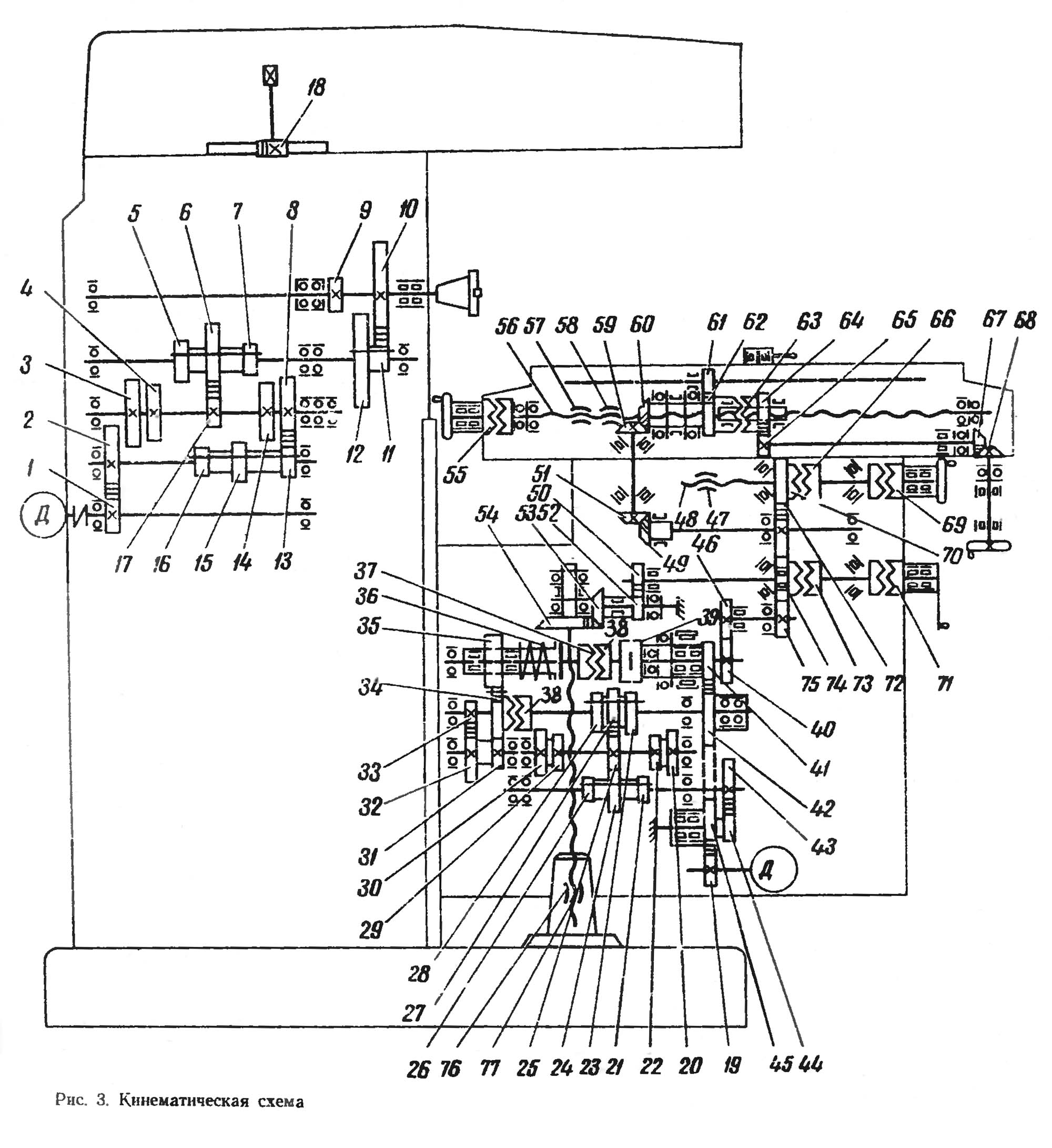 Схема кінематична консольно-фрезерного верстата 6Р83. Скачать в увеличенном масштабе